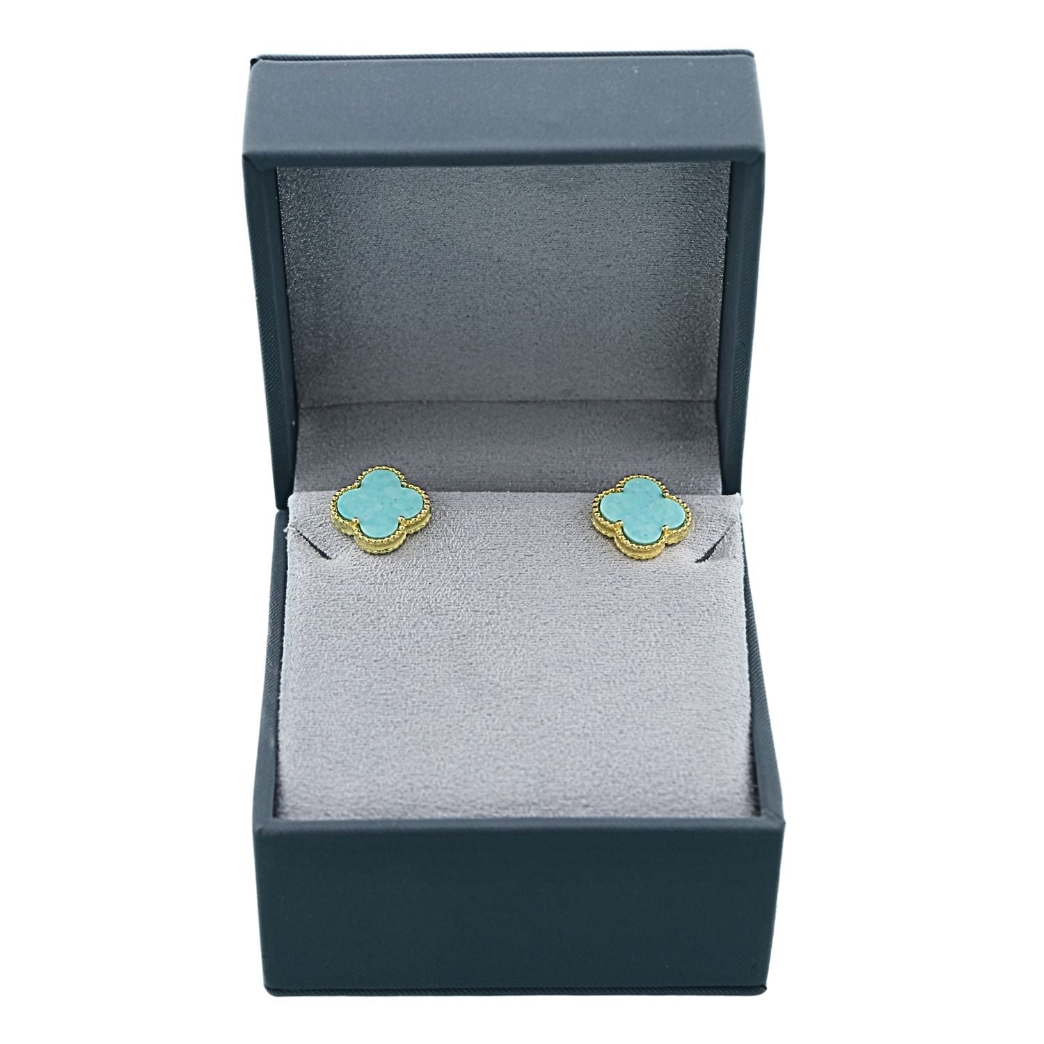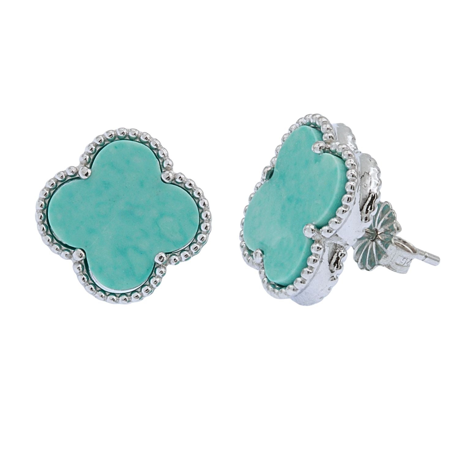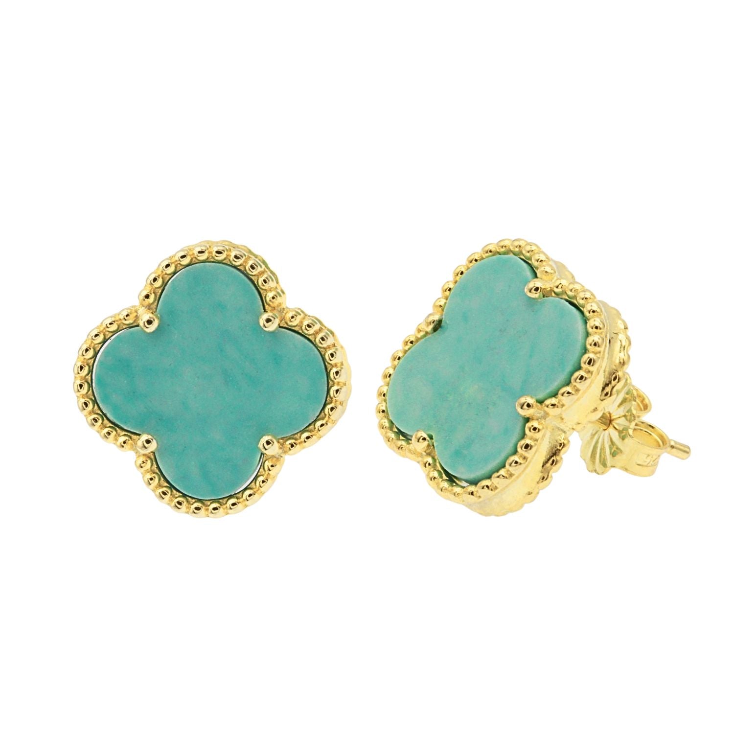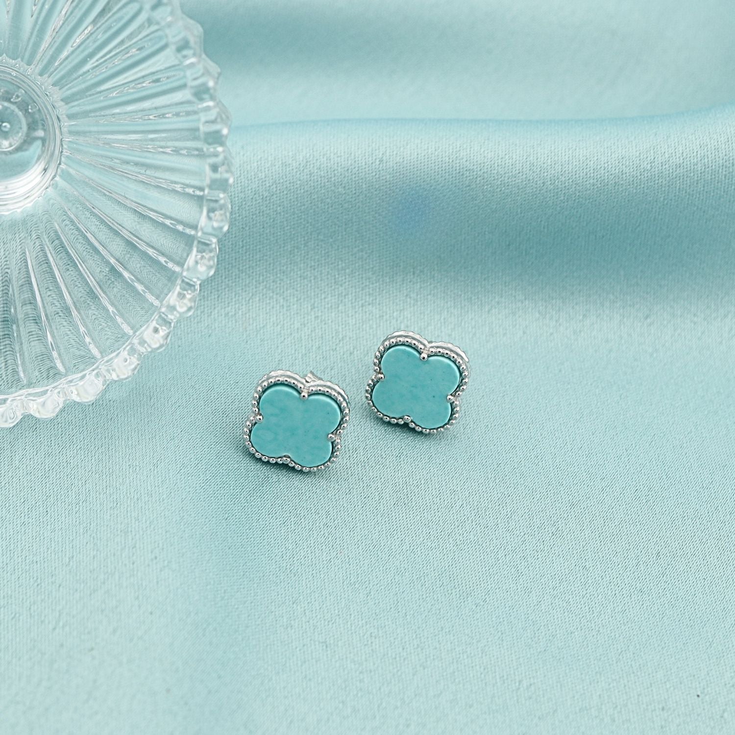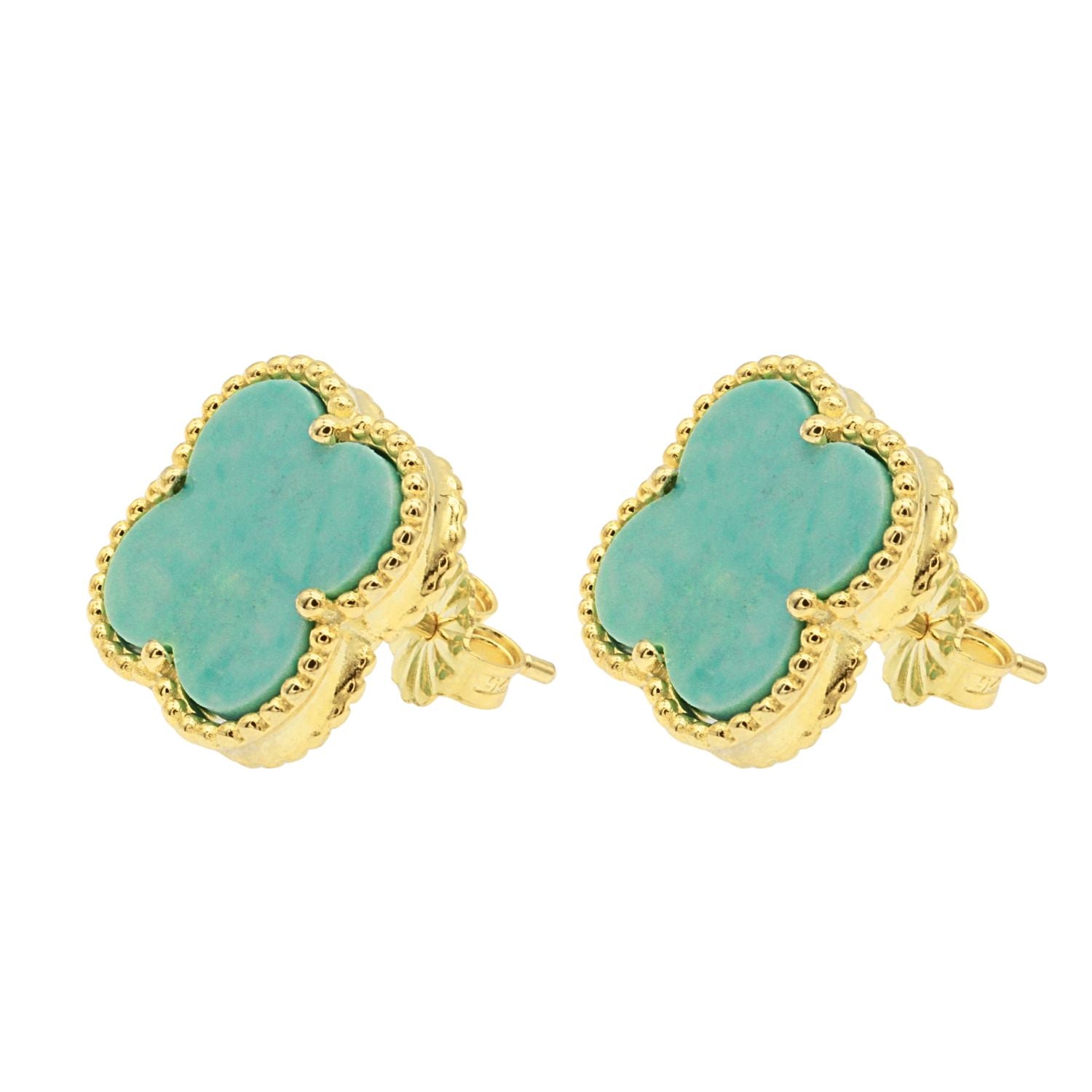Cercei din argint 925 in forma de floare, decorati cu piatra naturala turcoaz. Un design feminin, delicat si plin de prospetime, ideal pentru orice sezon.