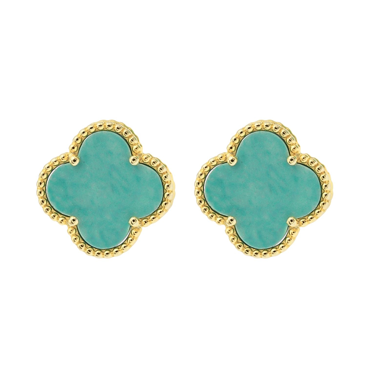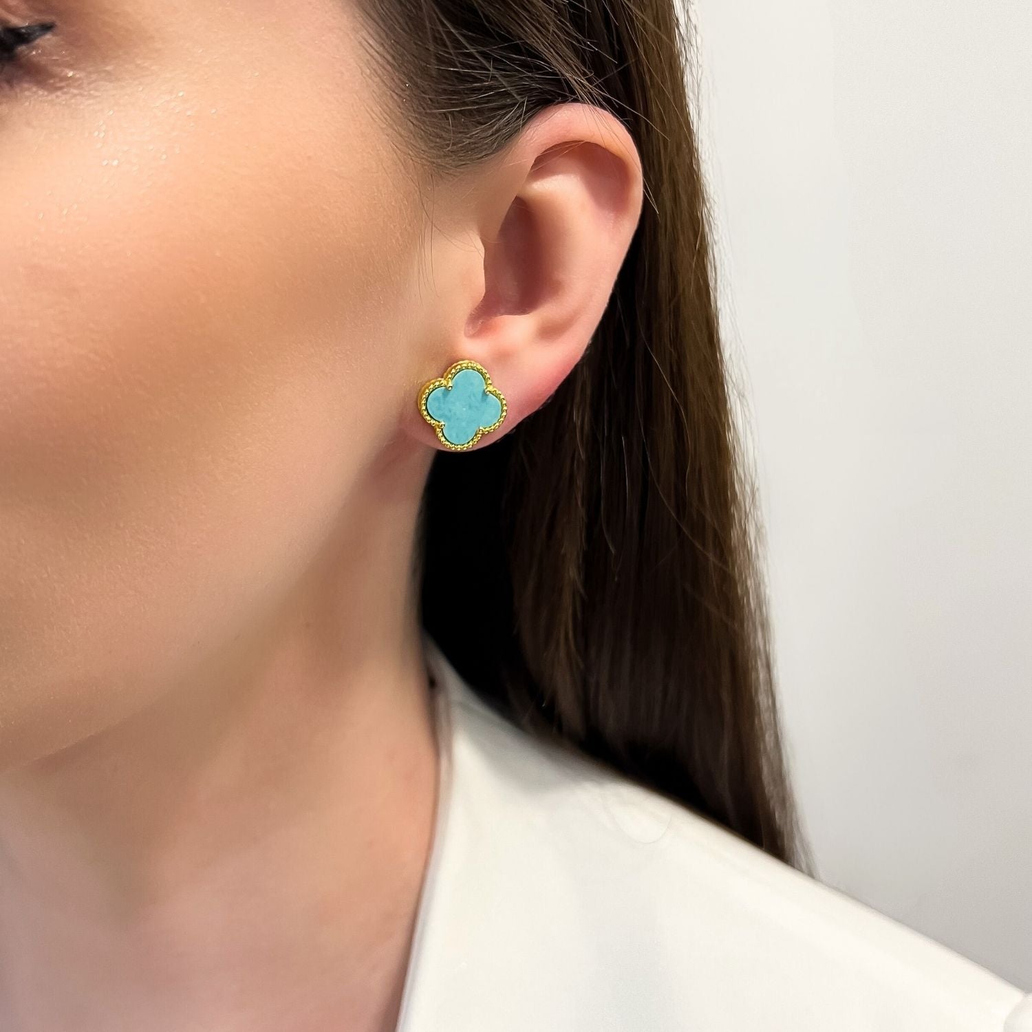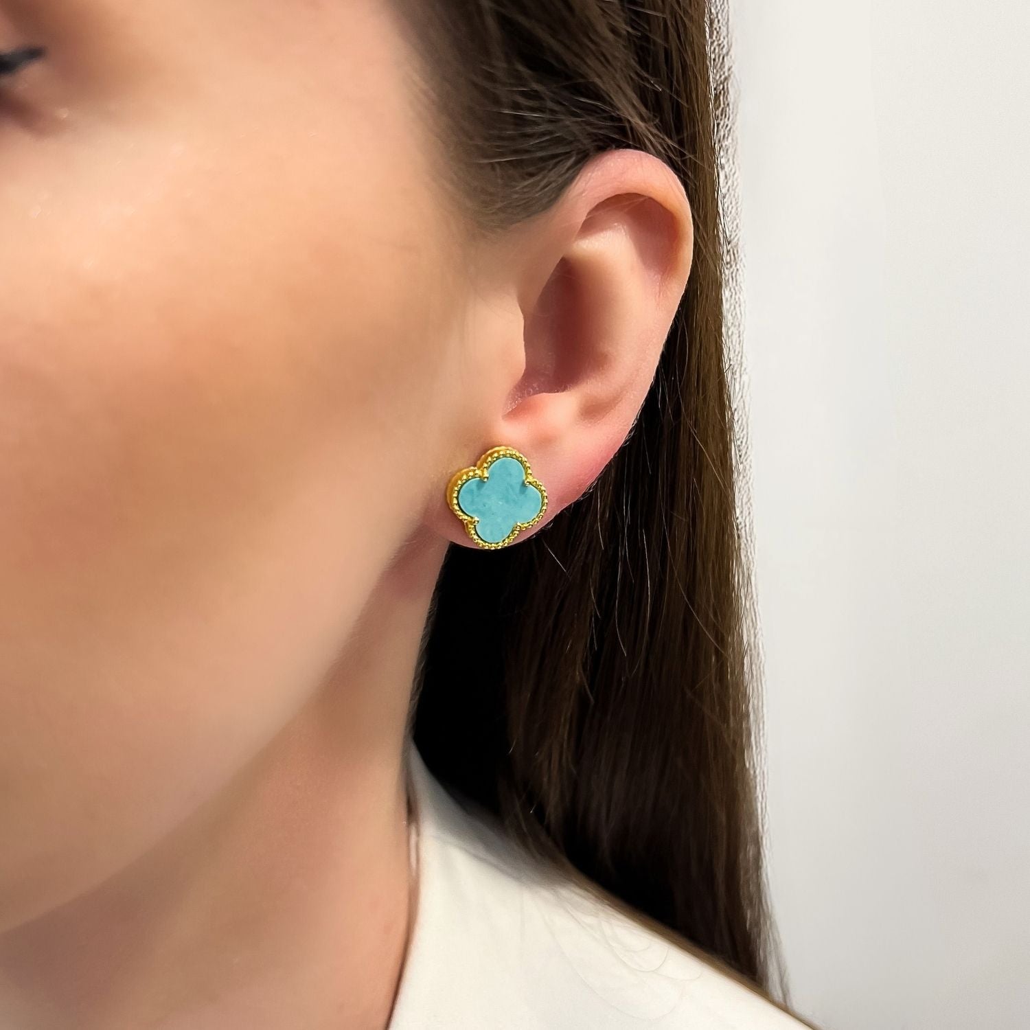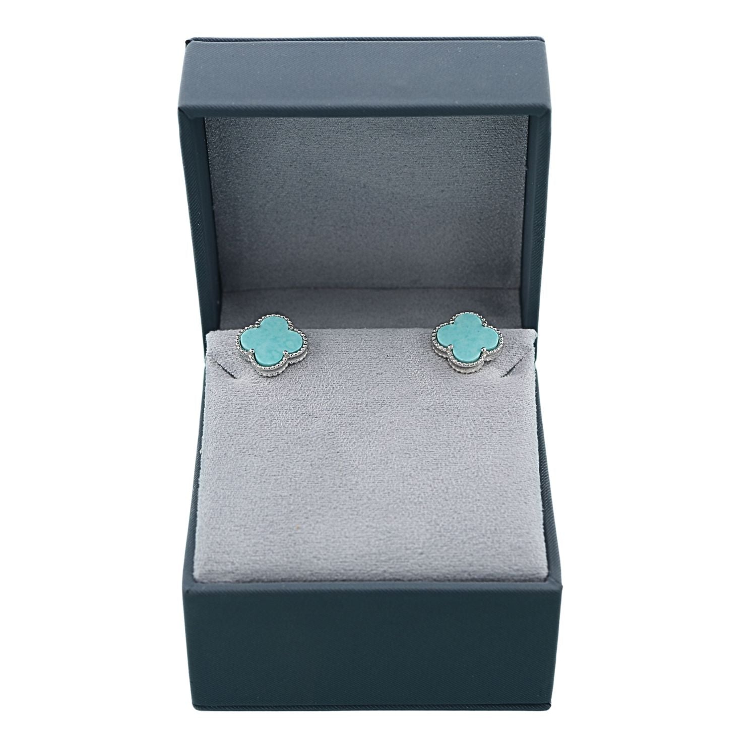 Cercei din argint 925 in forma de floare, decorati cu piatra naturala turcoaz. Un design feminin, delicat si plin de prospetime, ideal pentru orice sezon.