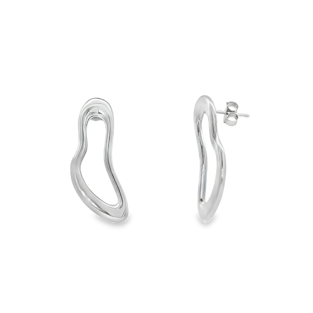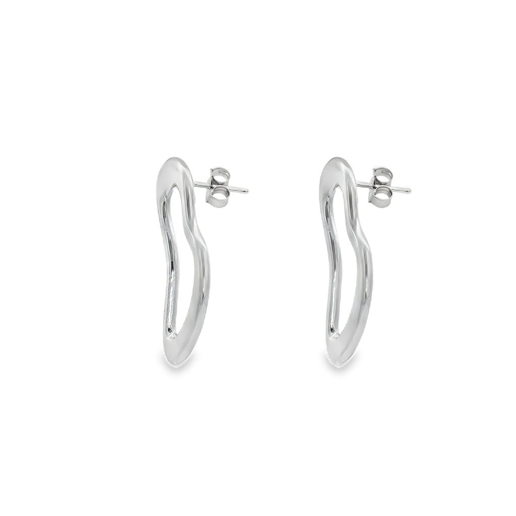 Cercei din argint placati cu rodiu pentru extra protectie cu design geometric modern, ideali pentru un look contemporan si sofisticat.