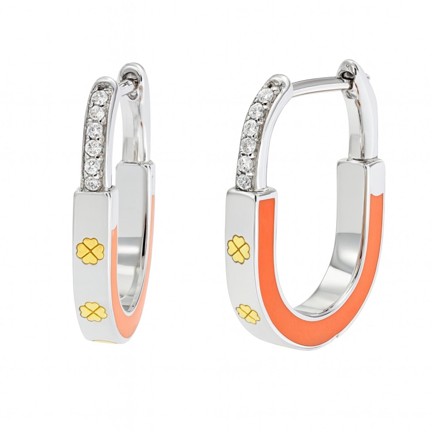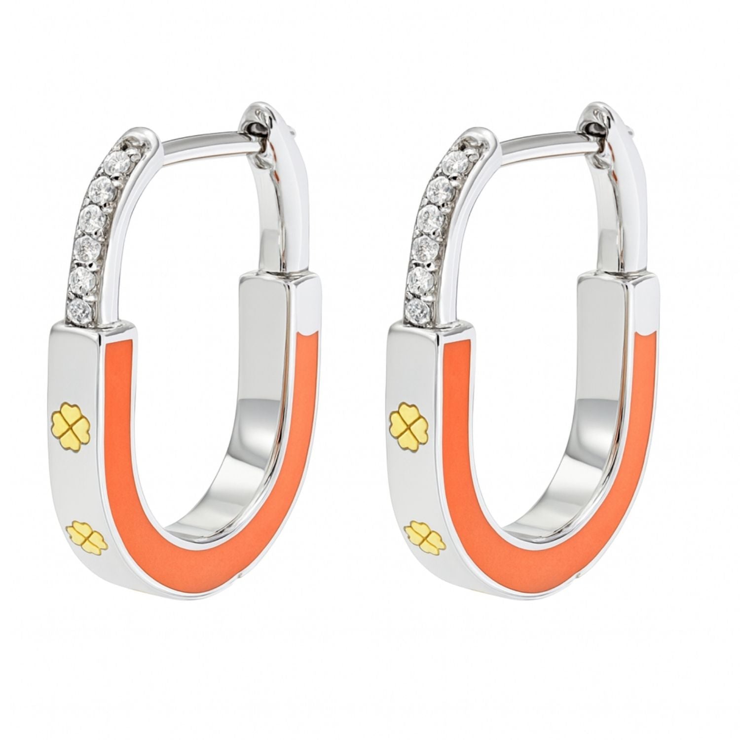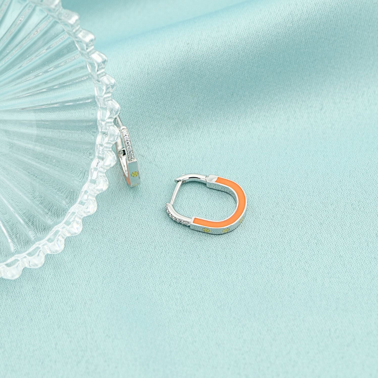 Cercei din argint 925 cu design geometric si detalii portocalii – un accesoriu modern si indraznet, ideal pentru tinute statement sau edgy.