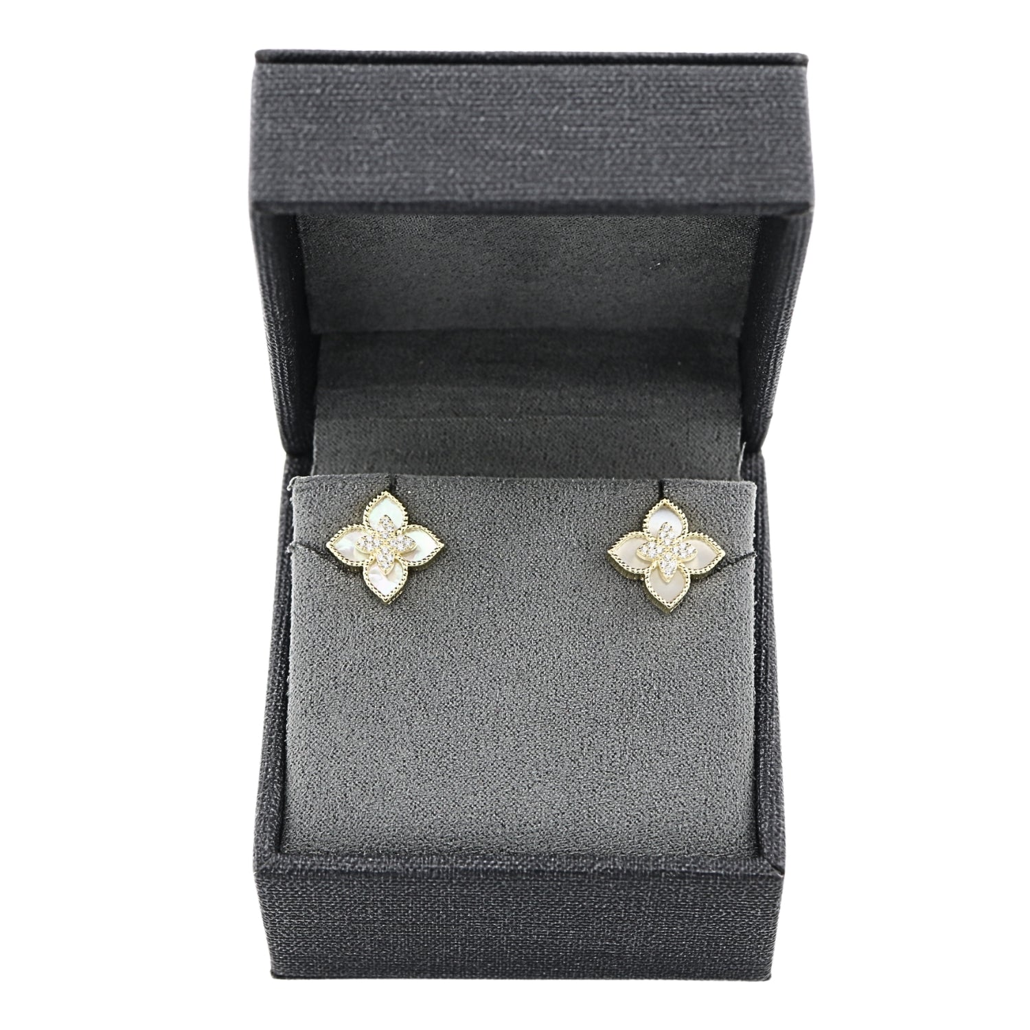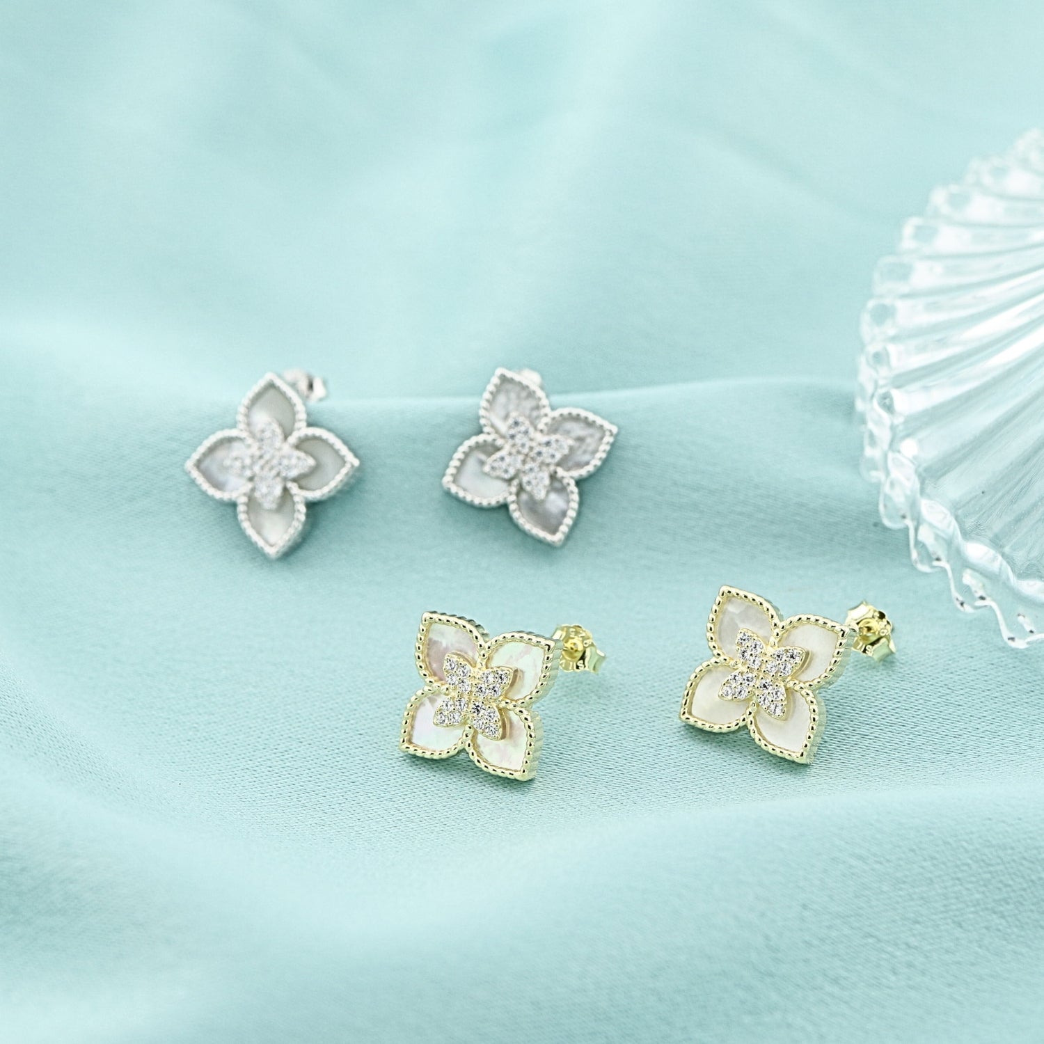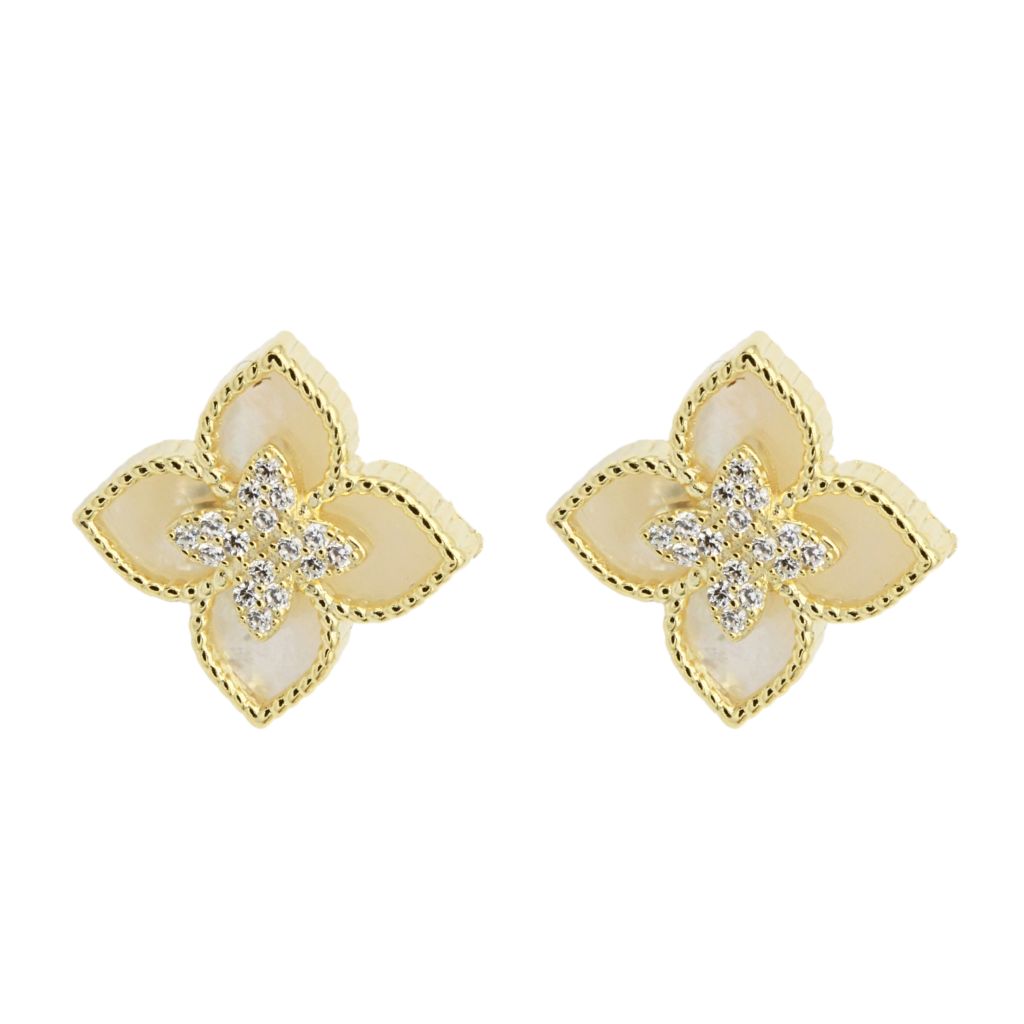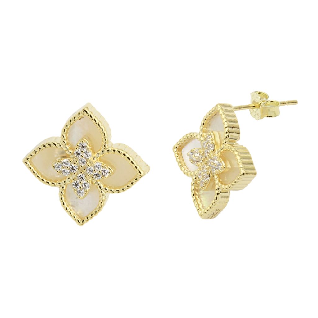 Cercei Argint Placat cu Aur Floare cu Sidef