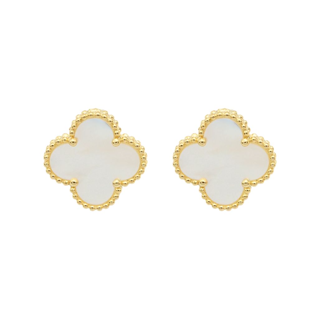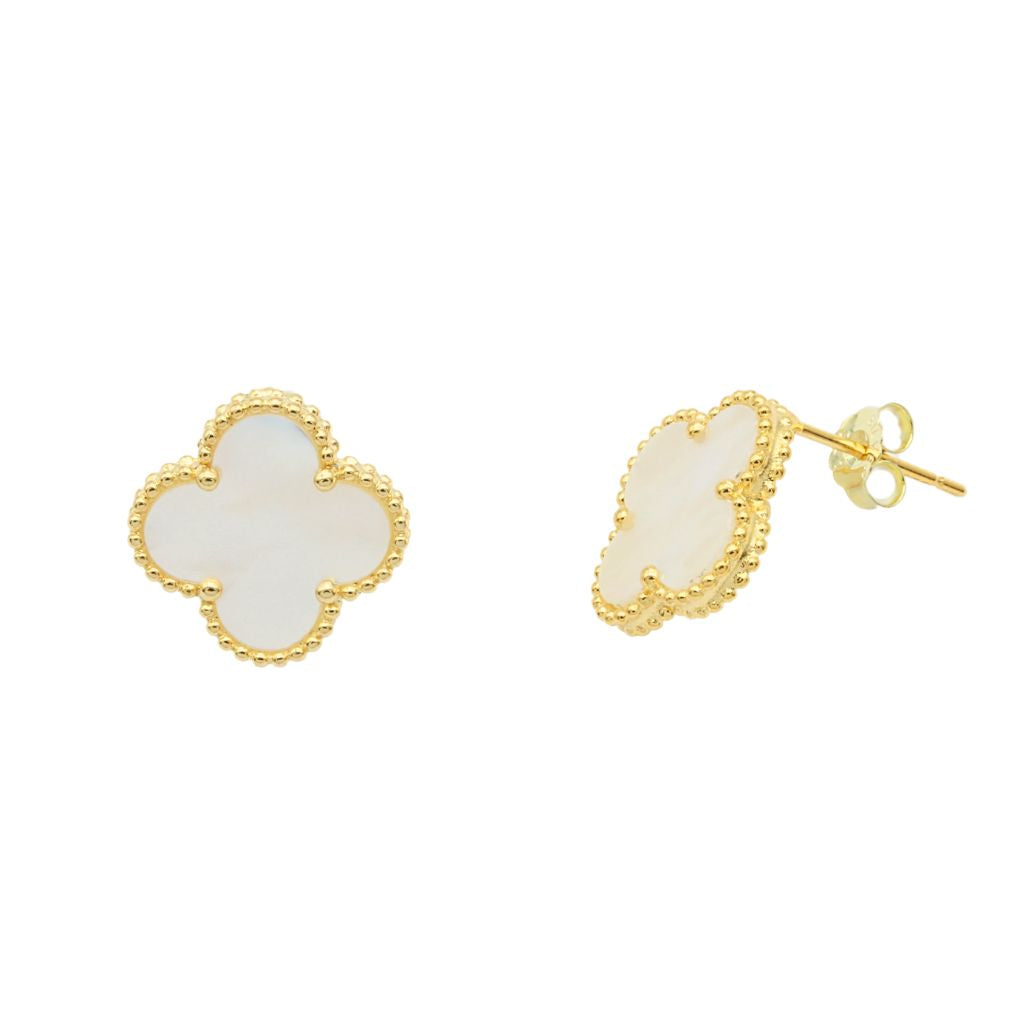 Cercei Argint Placat cu Aur Floare cu Sidef