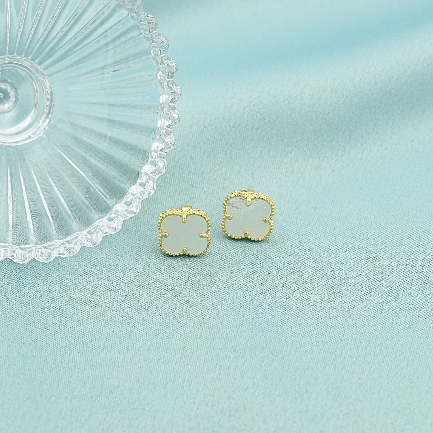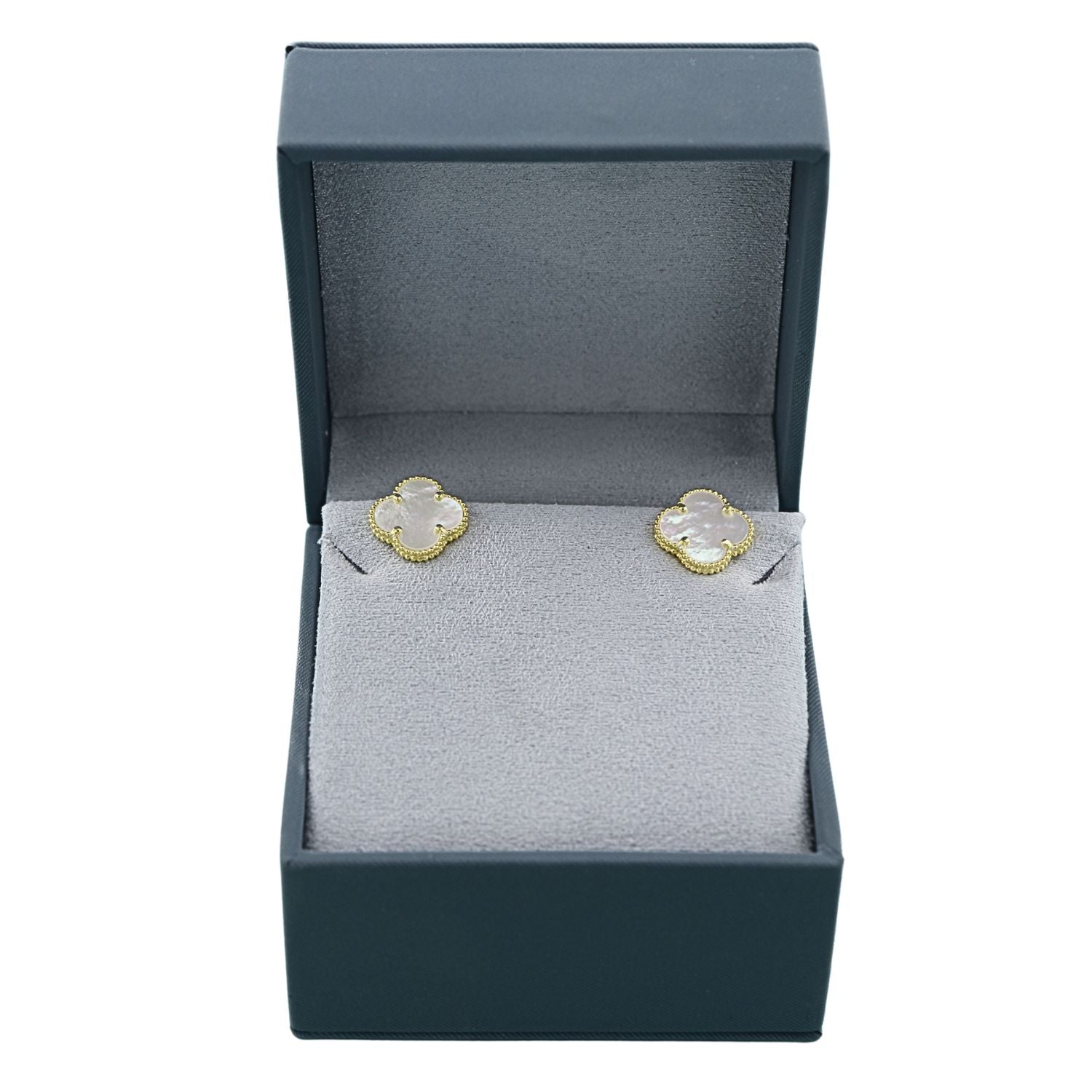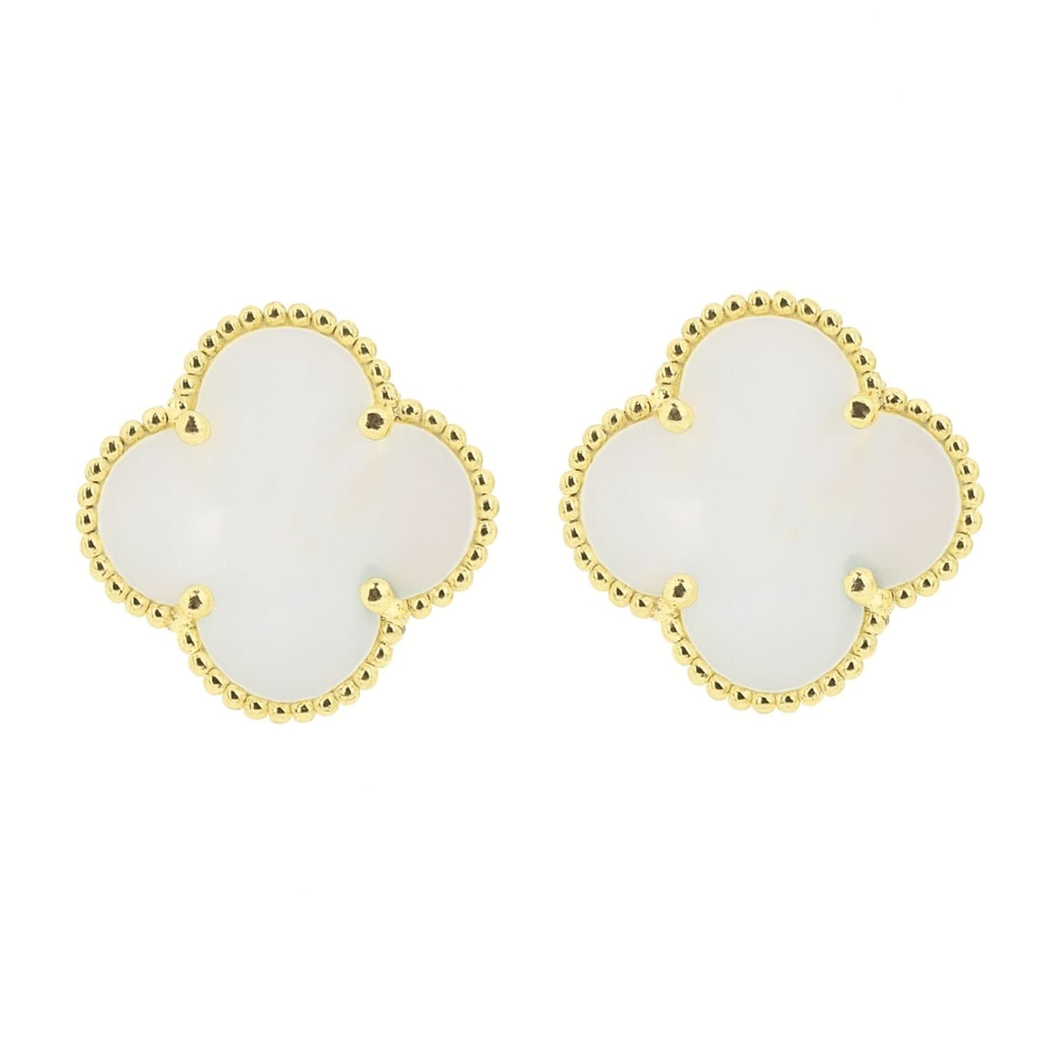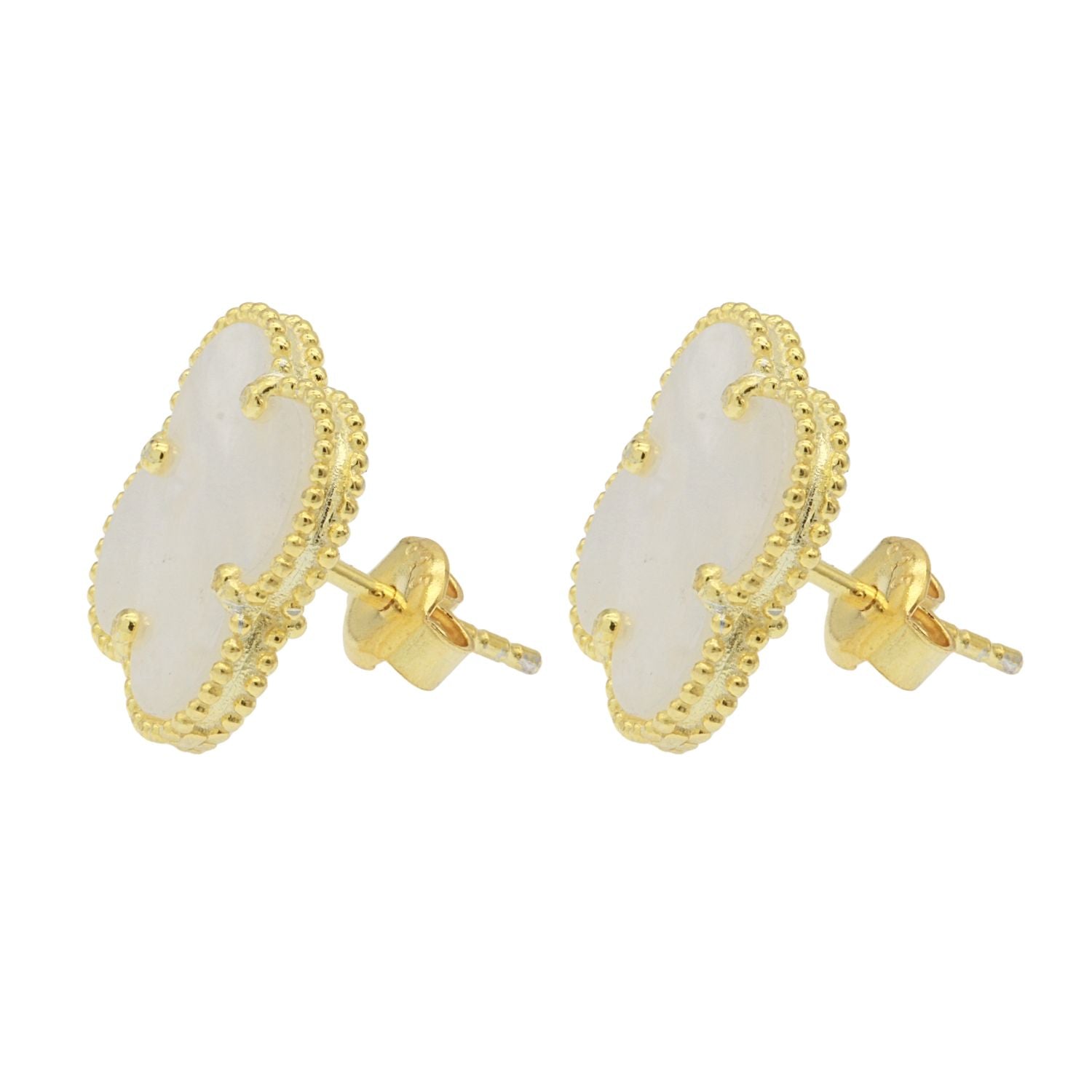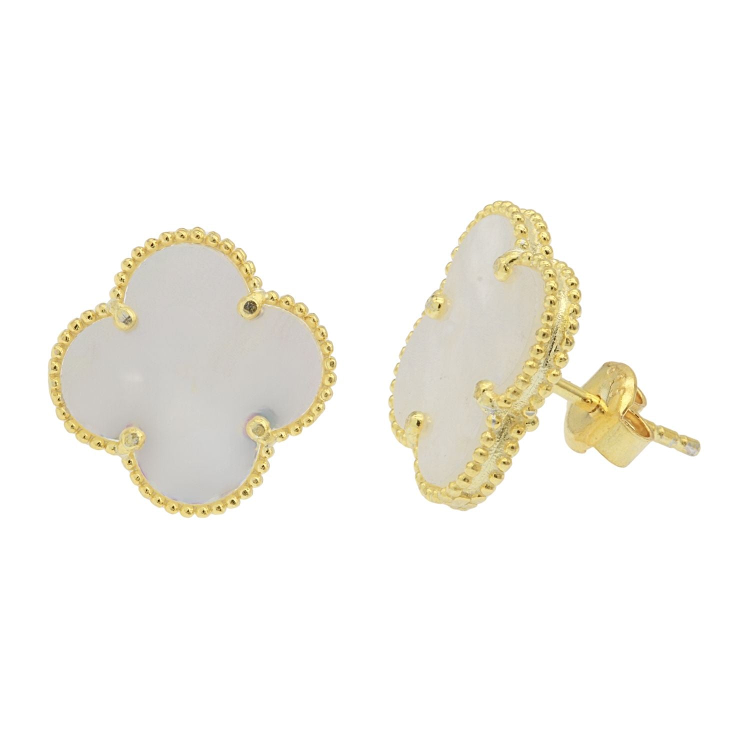 Cercei din argint 925 placat cu aur, in forma de floare, cu sidef natural. Un accesoriu elegant si delicat, ideal pentru un look feminin si rafinat.