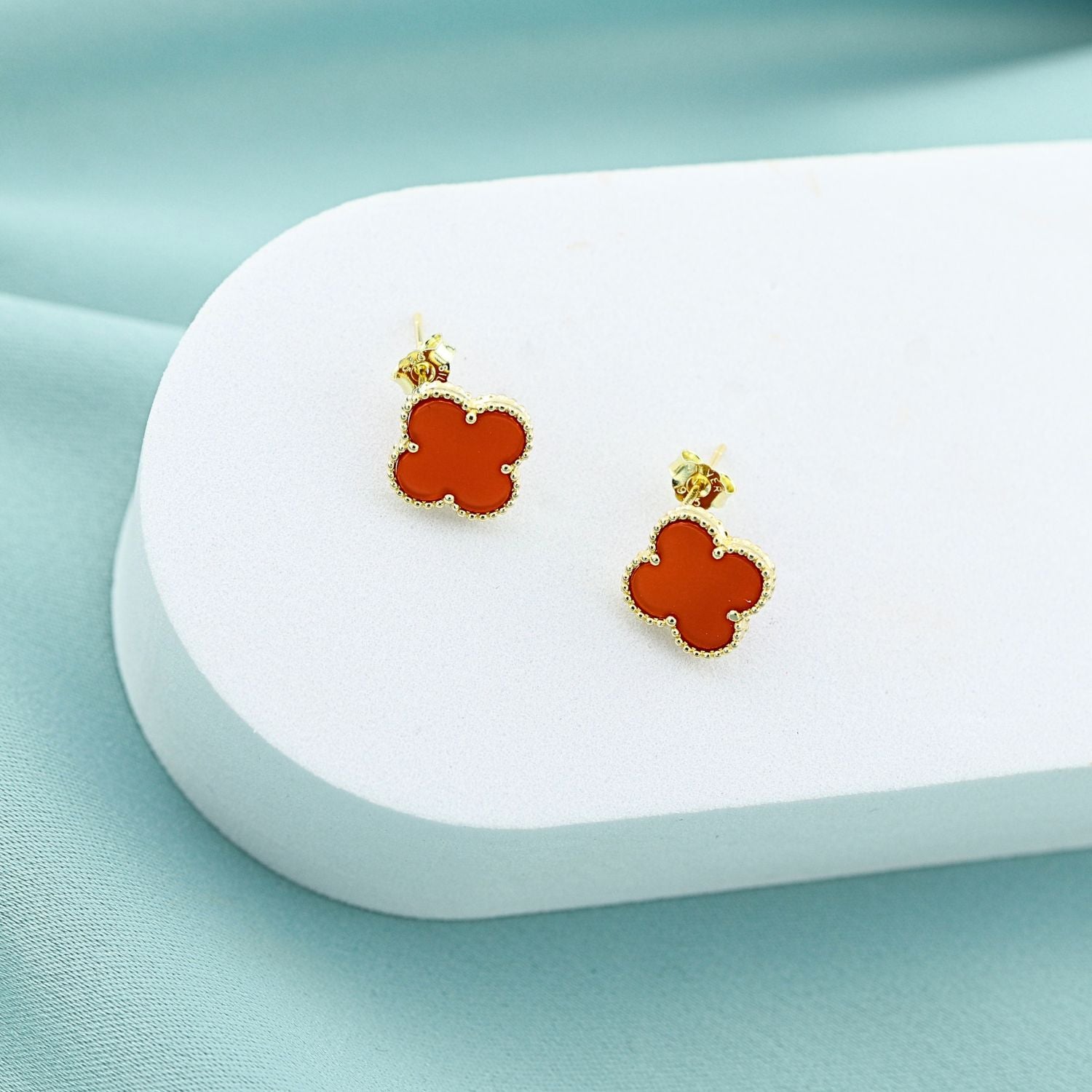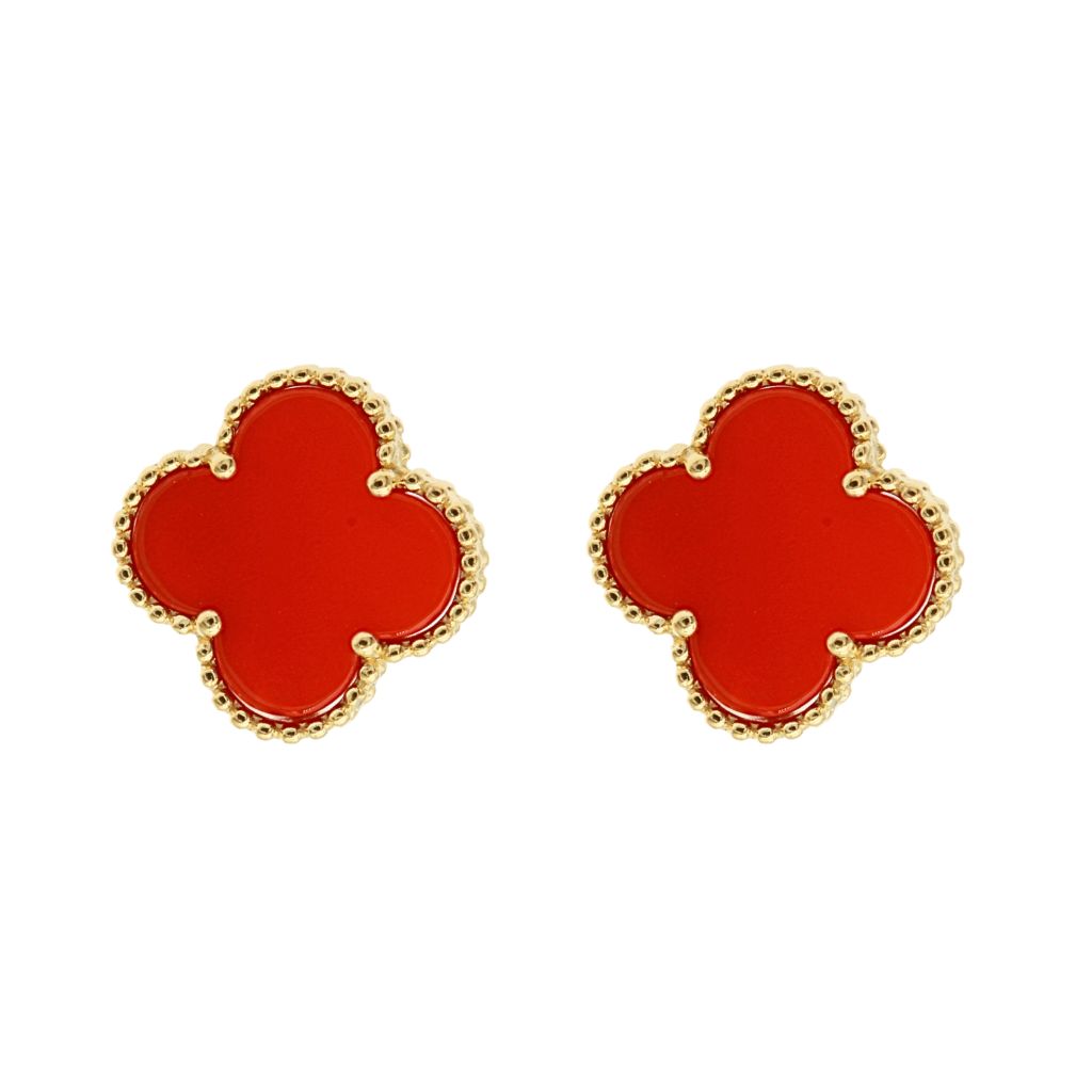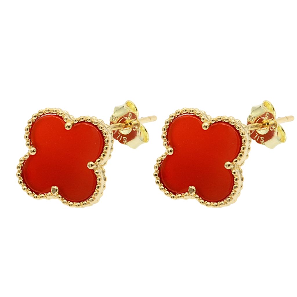 Completează-ți colecția de bijuterii cu acești cercei din argint 925 placat cu aur, fin lucrati în formă de floare, având petale din agat roșu natural. Strălucirea aurului contrastează perfect cu intensitatea roșului, simbolizând pasiunea, eleganța și rafinamentul. Un accesoriu deosebit, potrivit atât pentru ținutele de zi, cât și pentru ocazii speciale. Alege-i pentru tine sau oferă-i cadou unei persoane speciale!