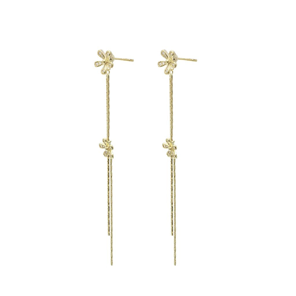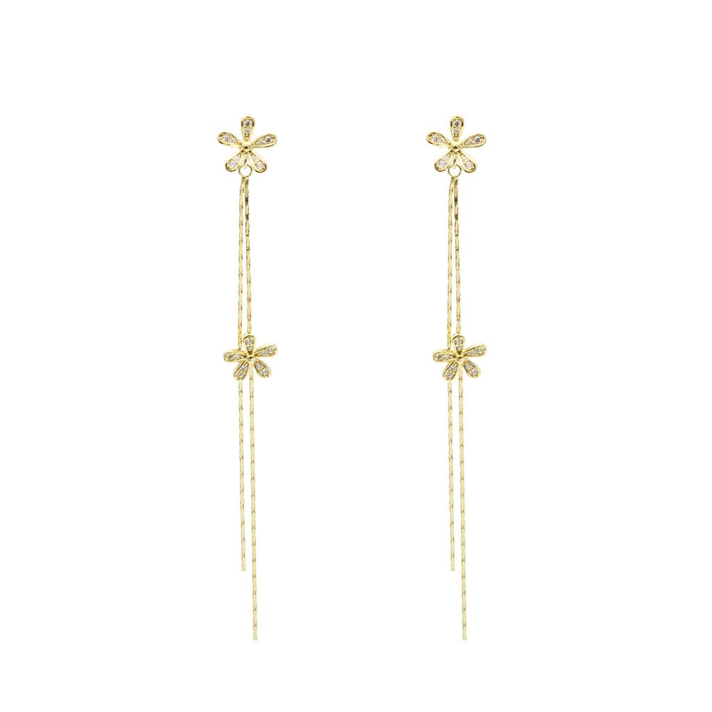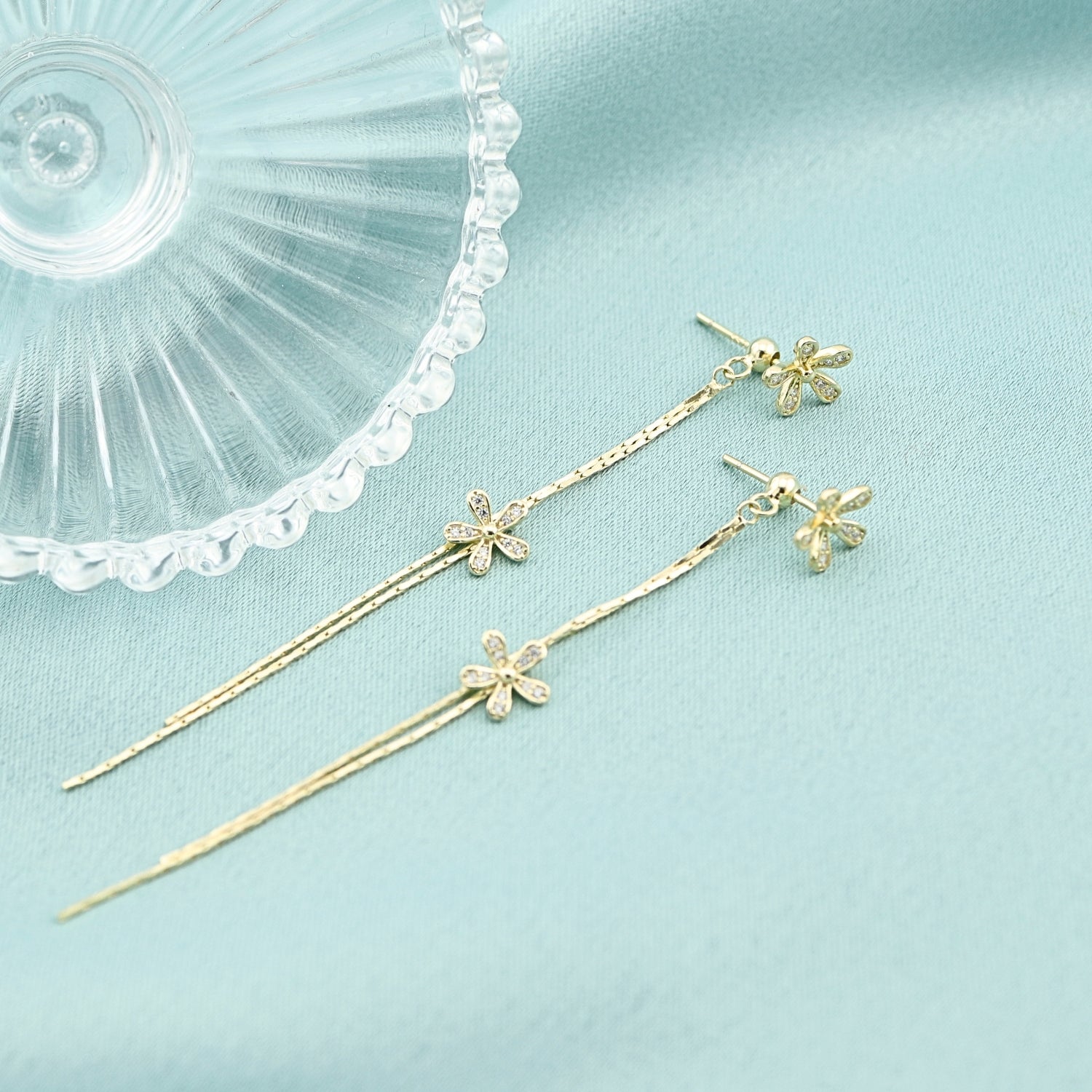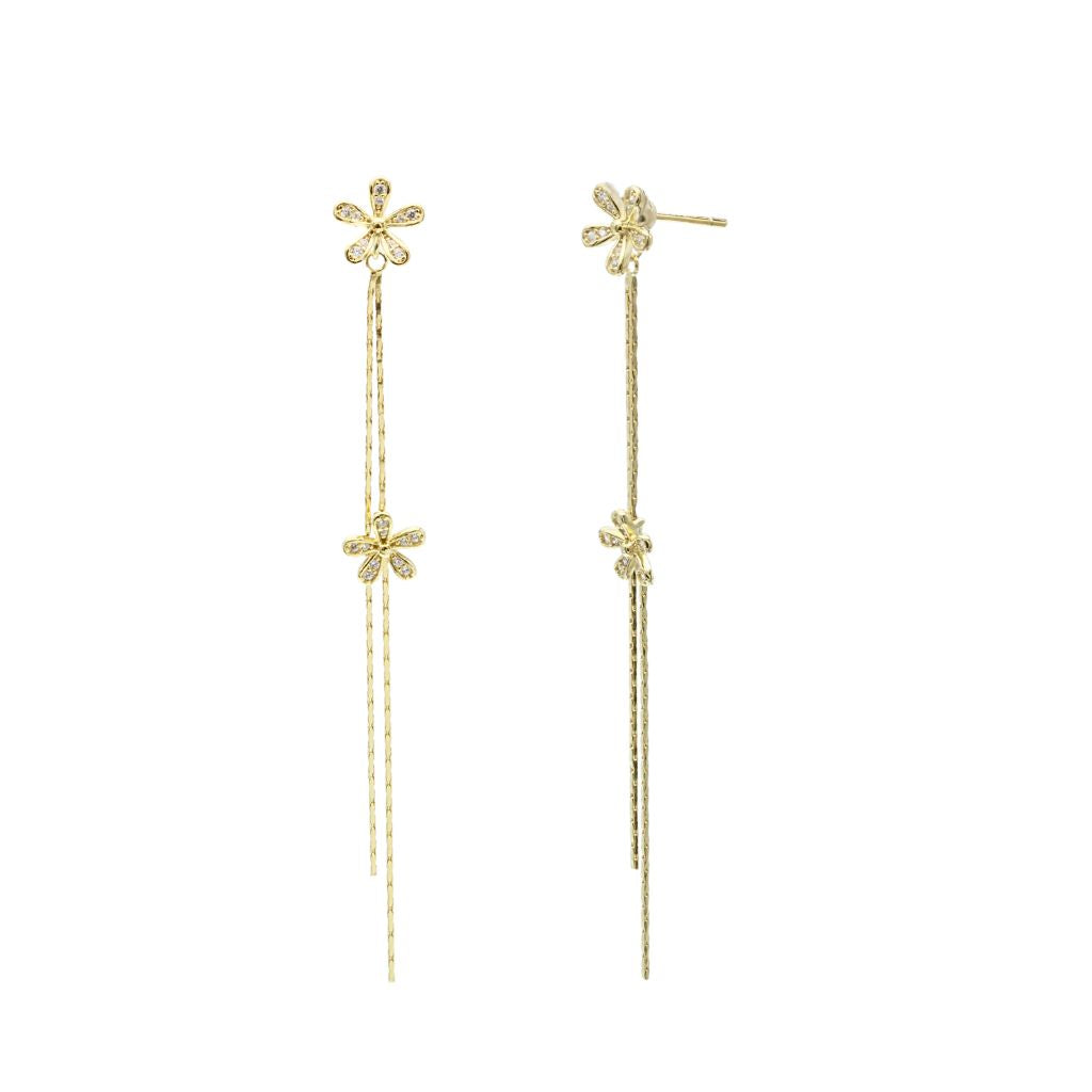 Cercei Lungi din Argint Placat cu Aur – Fir Elegant cu Flori Delicate
