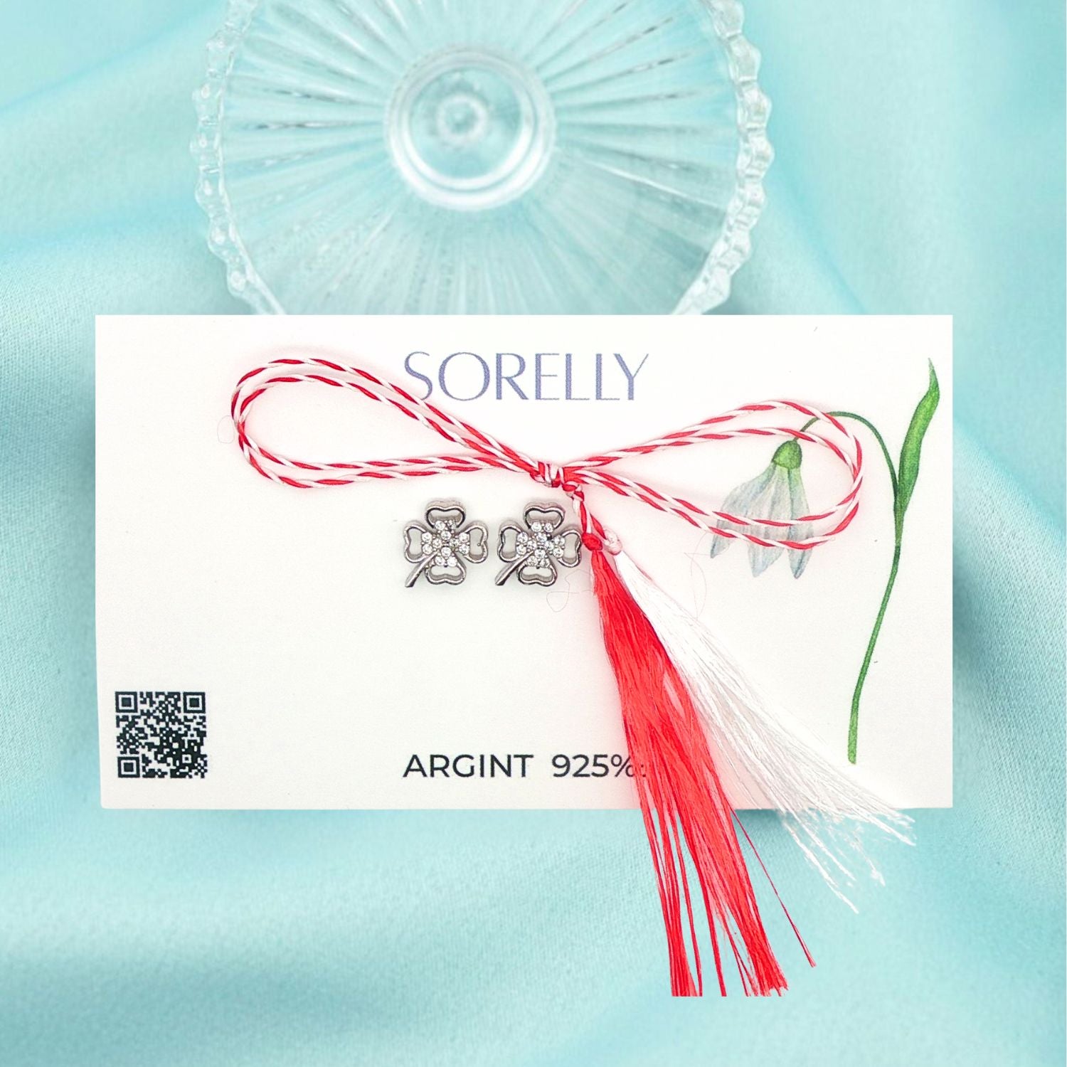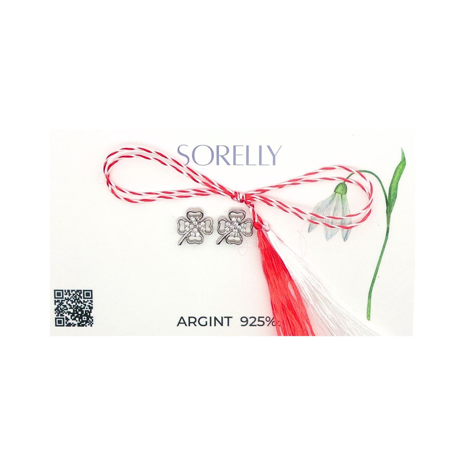 Martisor Cercei Argint Trifoi Norocos cu Zirconii
