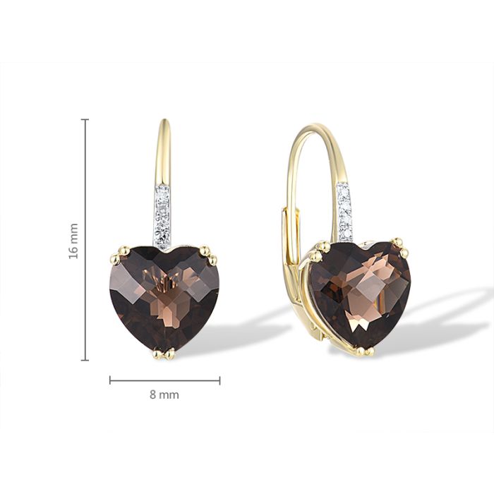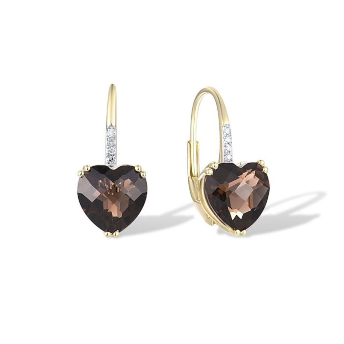 Cercei Aur 14K cu Cuart Fumuriu in Forma de Inima si Diamante 0.023ct