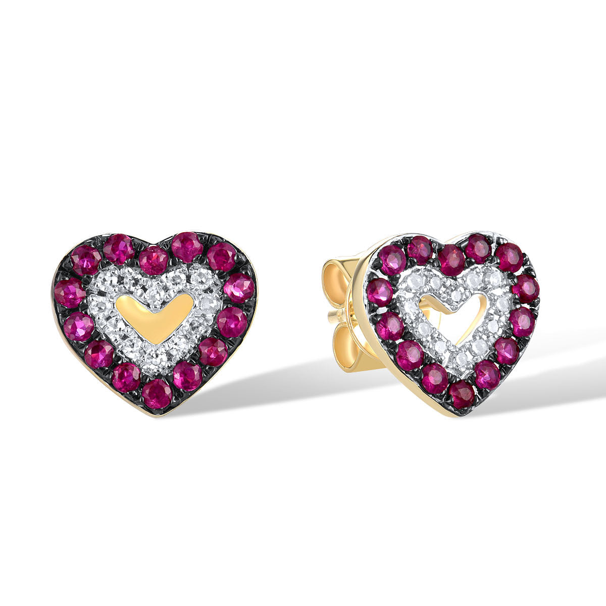 Cercei Aur 14k Inima cu Diamante 0.065ct si Rubin 0.260ct