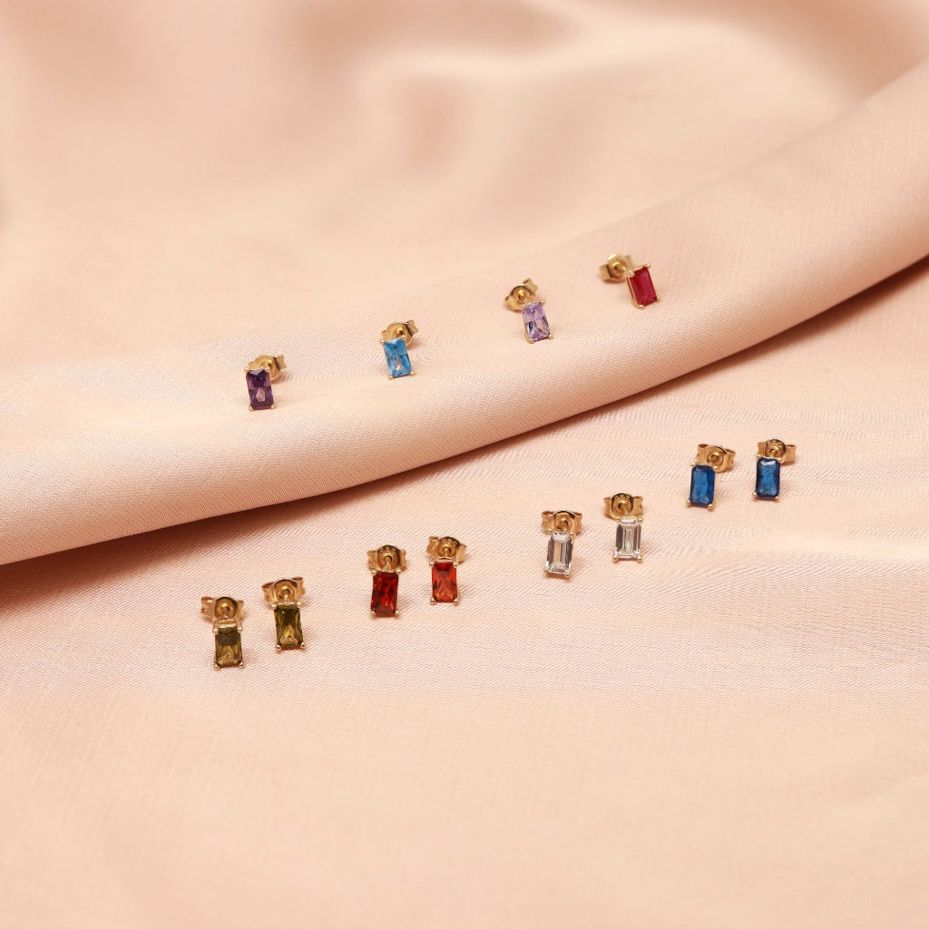 Cercei Aur 14k cu Piatra Dreptunghiulara