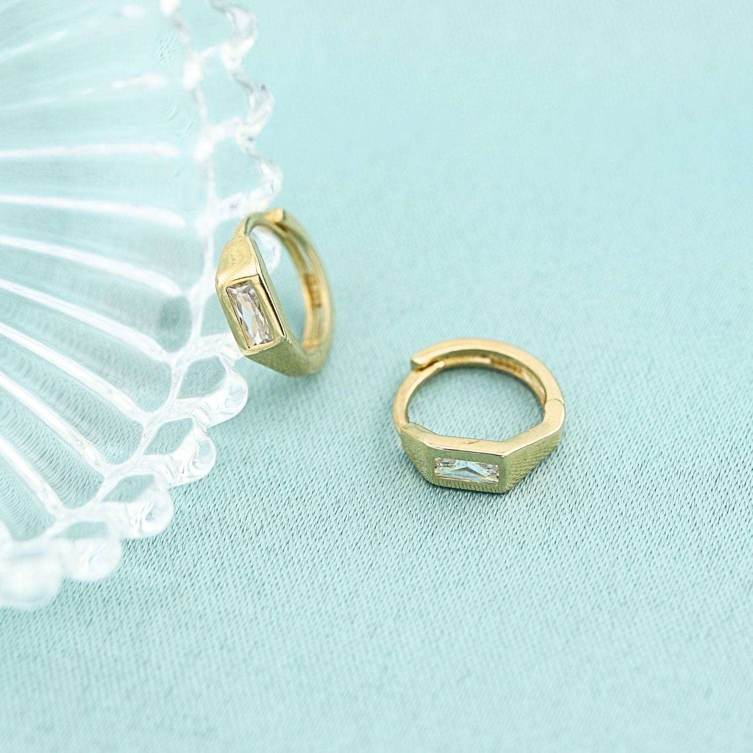 Cercei Aur 14k Veriga cu Piatra Zirconia Baguette