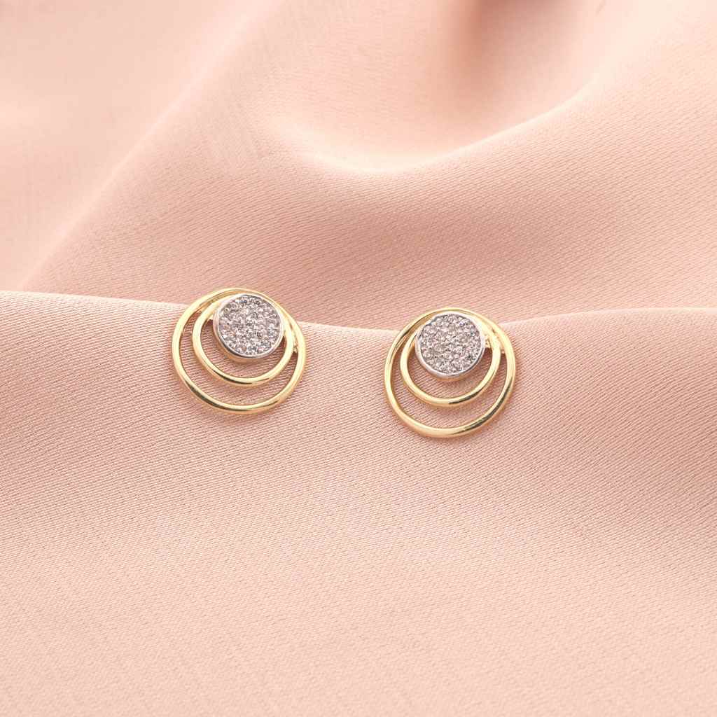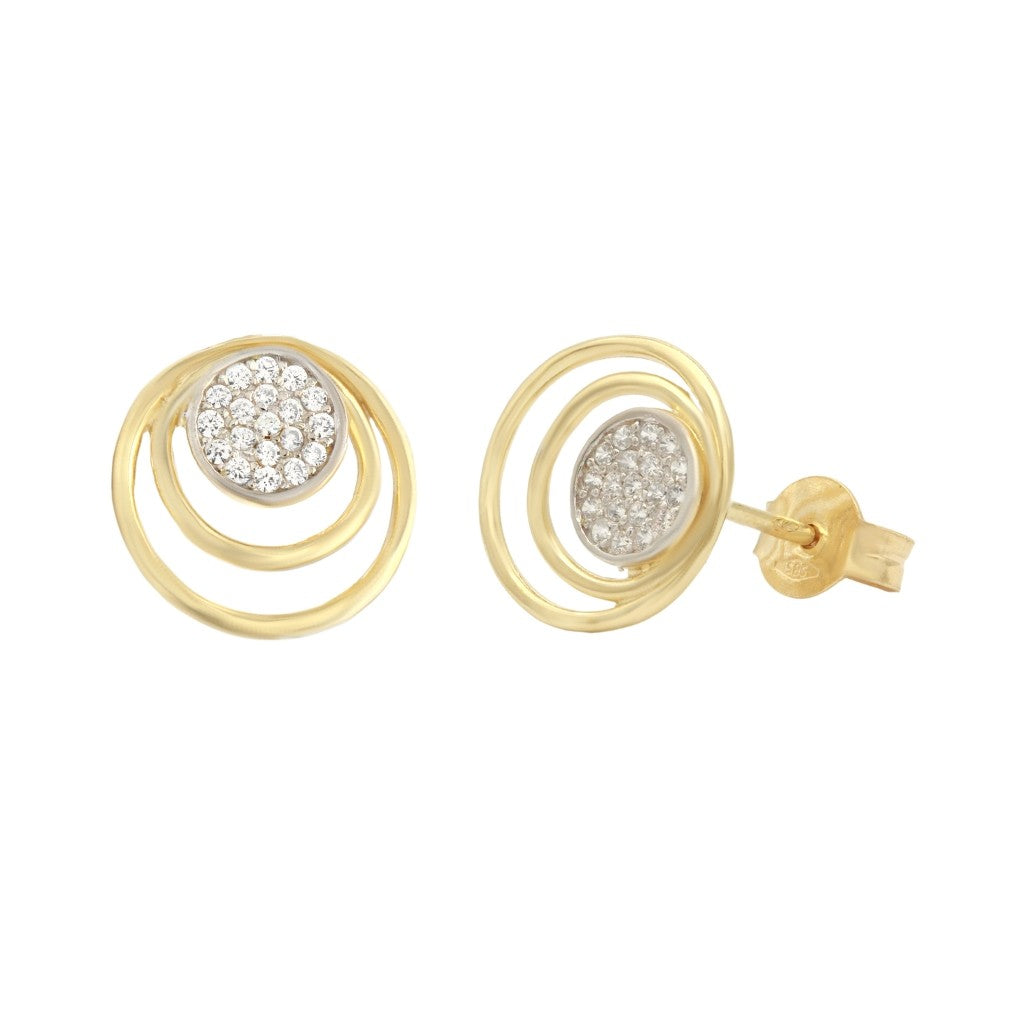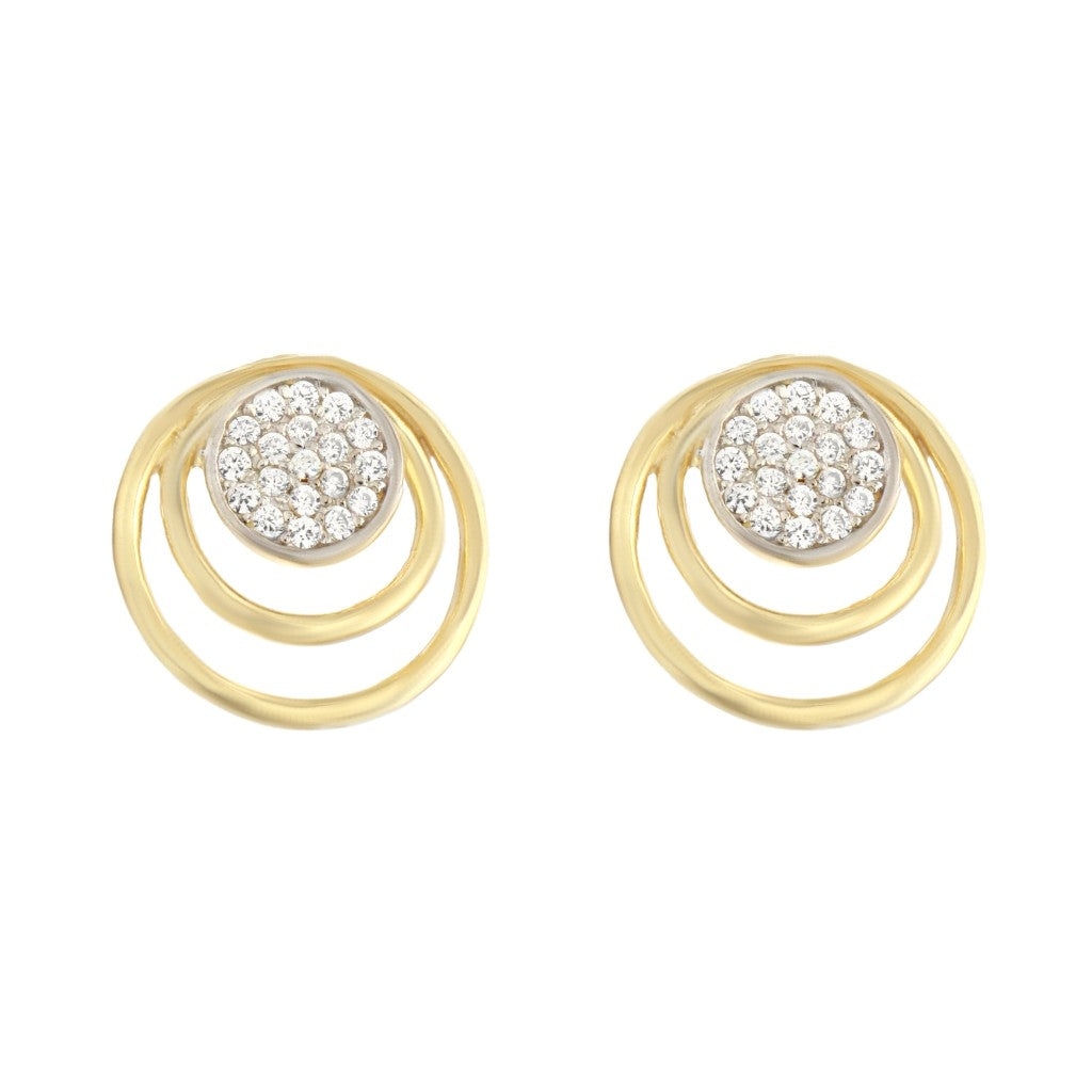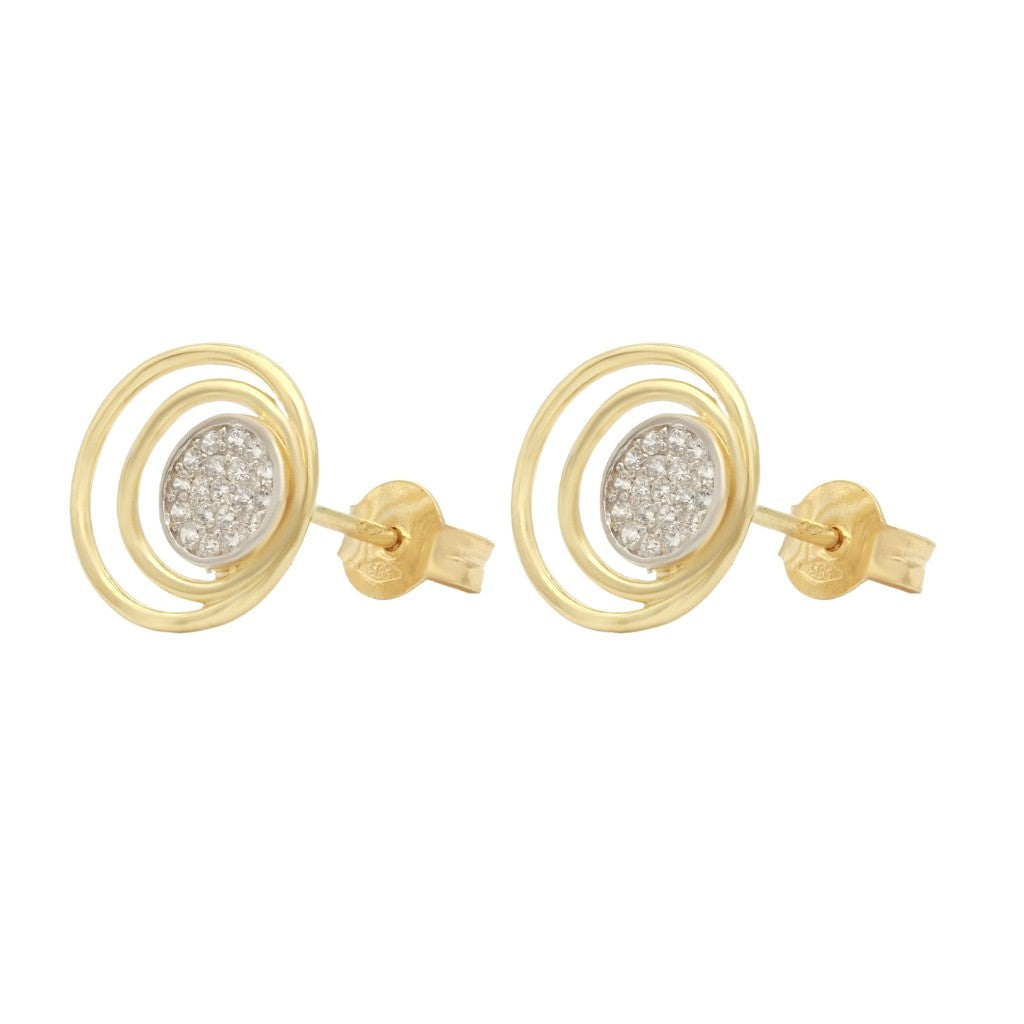Cercei Aur Alb si Galben 14k Cercuri cu Pietre Albe