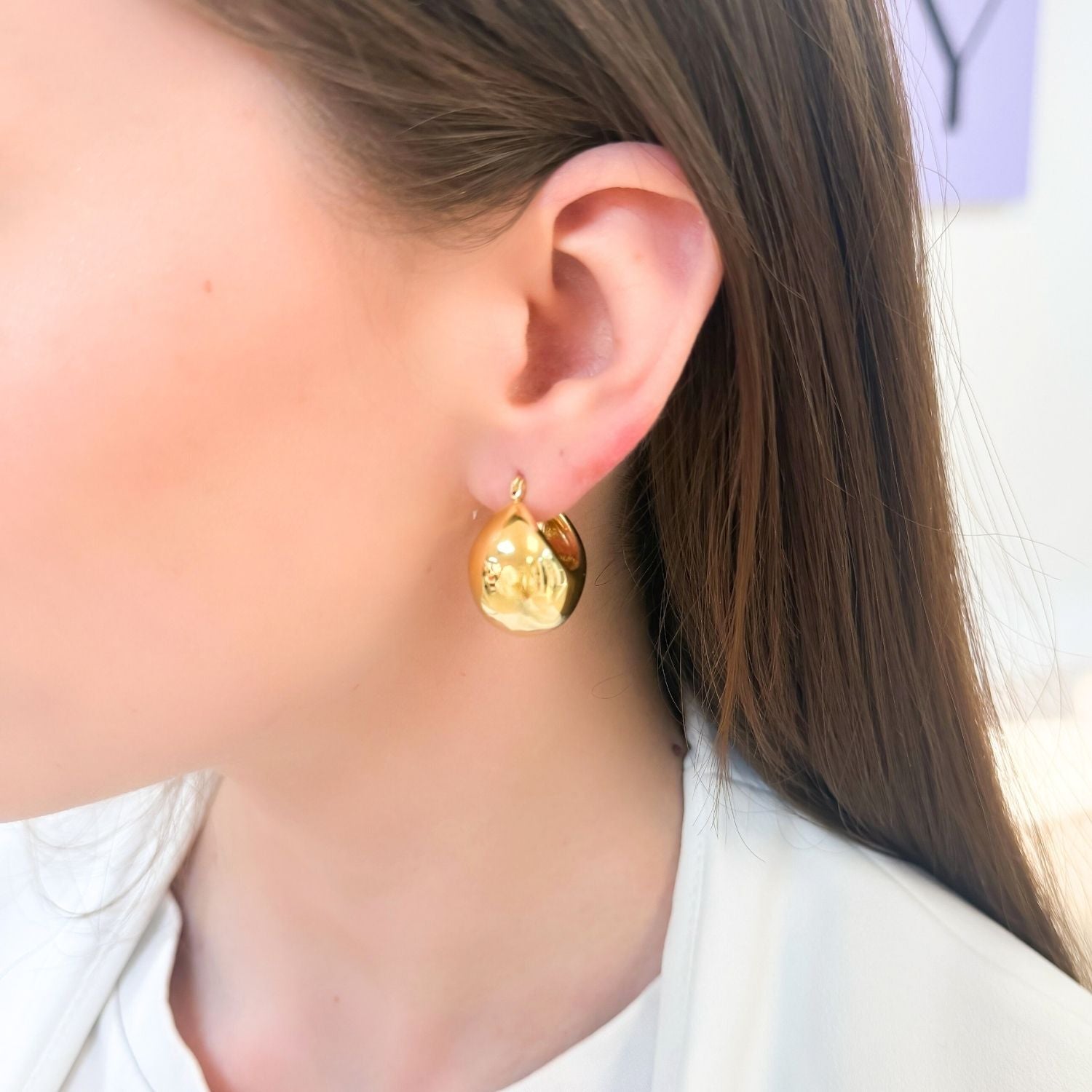Cerceii Chunky Hoops placati cu aur 14k sunt bijuterii statement, moderne si elegante, perfecte pentru femeile care iubesc stilul sofisticat si expresiv. Designul gros si rotunjit aduce un aer contemporan, in timp ce finisajul auriu cald confera rafinament si stralucire. Usor de asortat la orice tinuta, de la casual la eleganta, acesti cercei sunt piesa must-have care completeaza cu stil orice look. Ideali pentru purtare zilnica sau ocazii speciale. Cerceii sunt placati cu aur de 14k intr-un strat gros de cel putin 2 microni, fapt ce le confera o rezistenta indelungata.