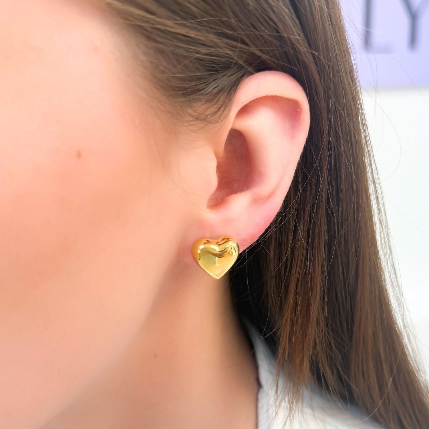 Cercei Placati cu Aur 14k Inima 3D