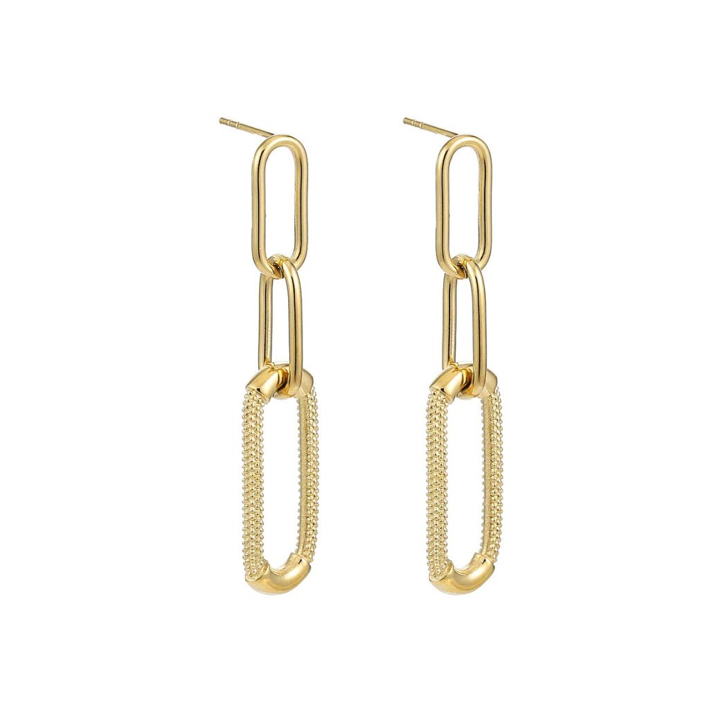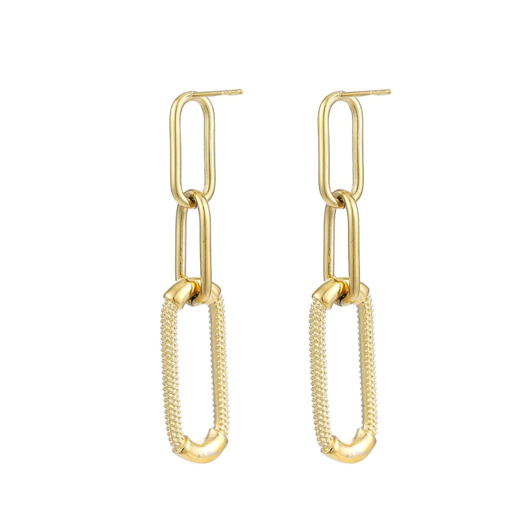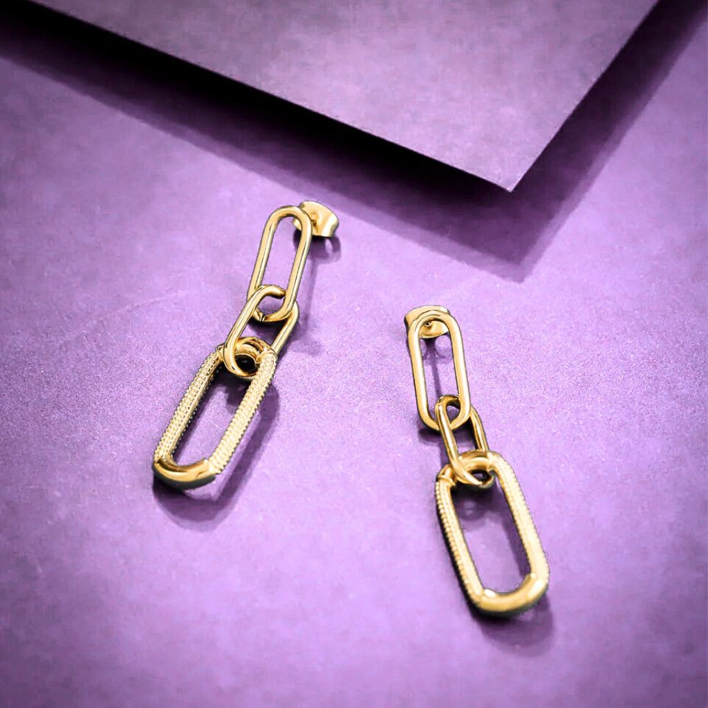 Cerceii Paperclip placati cu aur 14k sunt definitia elegantei minimaliste. Cu un design inspirat de lanturile tip paperclip, acest model modern adauga un accent cool si sofisticat oricarei tinute. Placajul cu aur 14k ofera o stralucire calda si luxoasa, pastrand in acelasi timp un aer fresh si urban. Perfecti pentru purtare zilnica sau ocazii speciale, acesti cercei sunt o piesa esentiala in colectia oricarei iubitoare de bijuterii moderne si versatile.