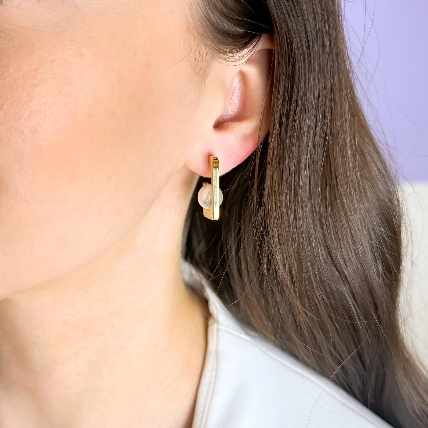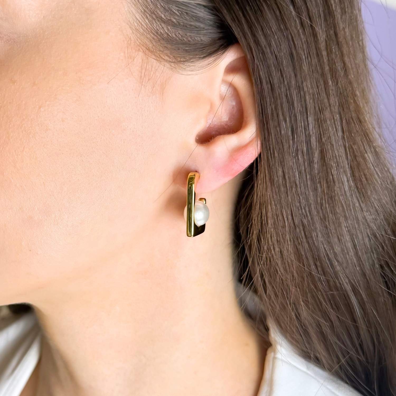 Cerceii Patrati cu Perla placati cu aur imbina geometria moderna cu delicatetea clasica a perlelor. Designul lor in forma patrata ofera un aer contemporan si indraznet, in timp ce perla centrala adauga feminitate si rafinament.
