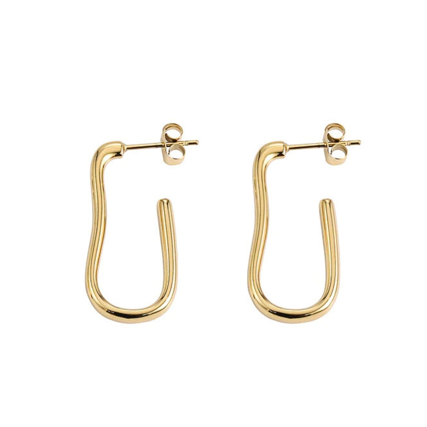 Cercei placati cu aur tip huggie hoops, cu design modern si confortabil, perfecti pentru un look elegant de zi sau seara