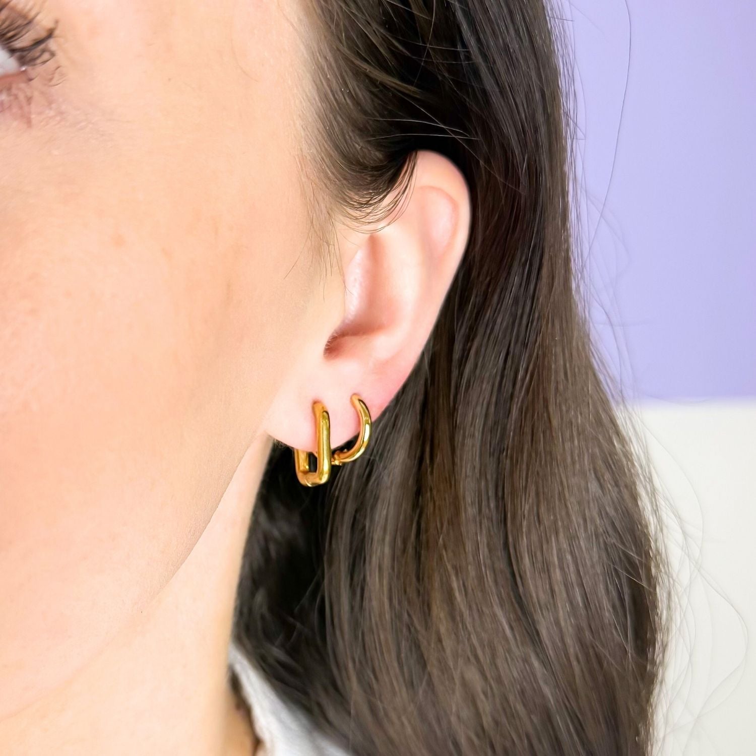 Cerceii Square Hoops placati cu aur aduc un twist modern clasicilor cercei rotunzi. Forma patrata, cu linii curate si design geometric, ii face ideali pentru un look contemporan si indraznet.