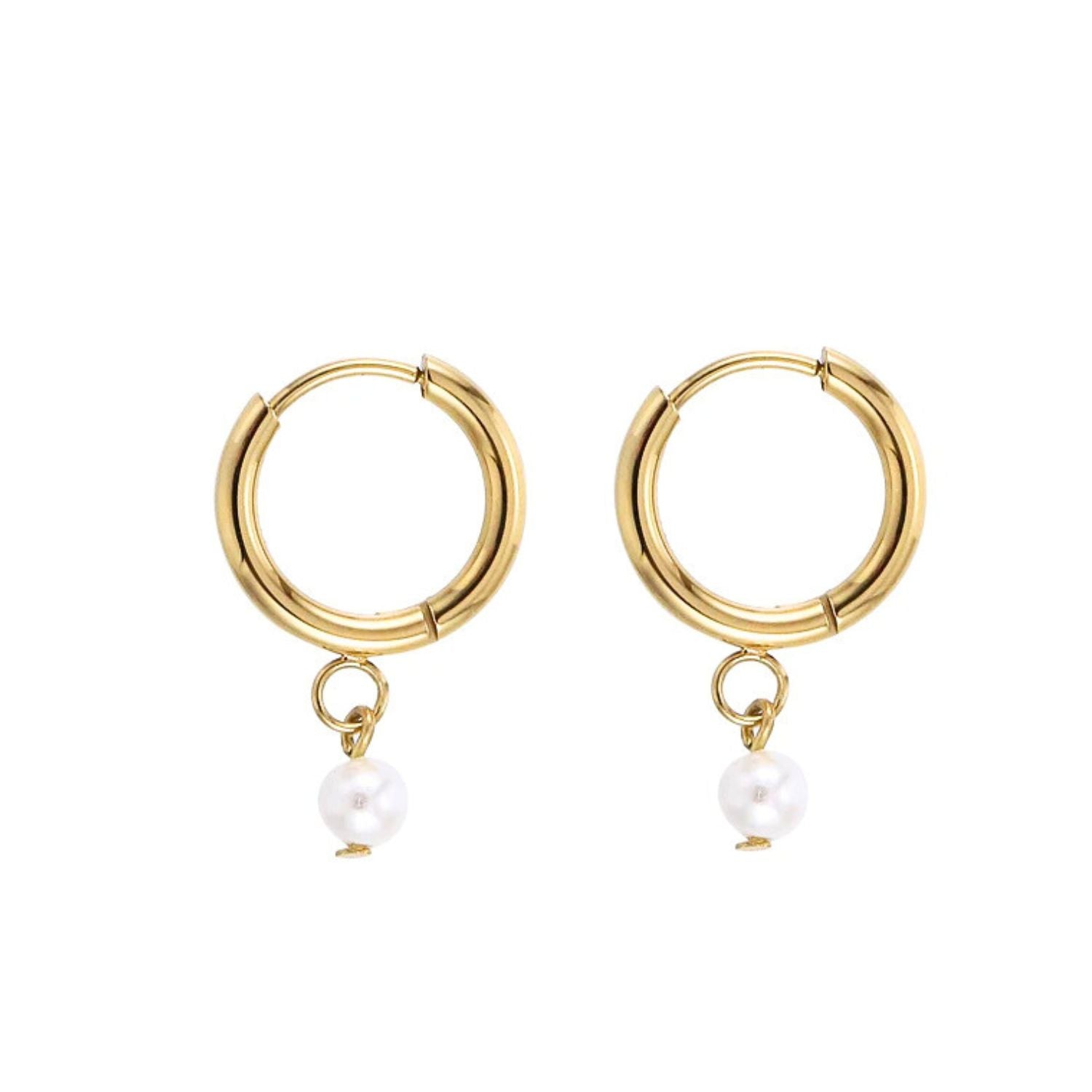 Cercei placati cu aur tip veriga cu perla, eleganti si rafinati, ideali pentru tinute clasice sau moderne, potriviti pentru orice ocazie.