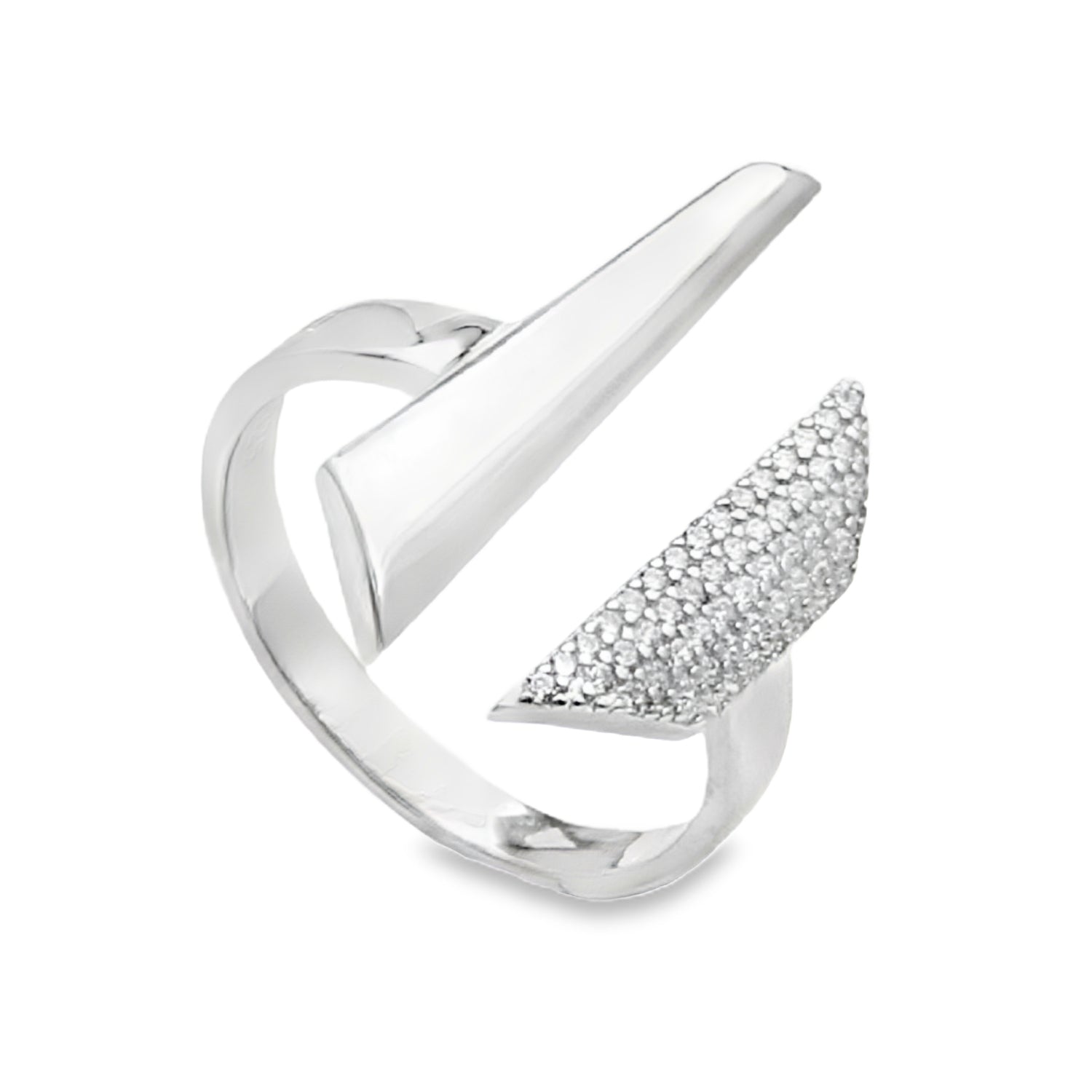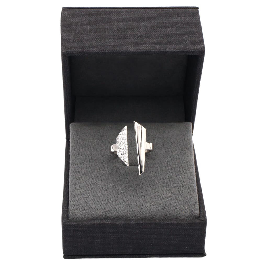 Inelul Half Cut din argint 925 este o piesa statement cu design geometric indraznet. O jumatate surprinde stralucirea subtila a pietrelor zirconia albe, iar cealalta parte are un aspect metalic lucios si minimalist – o combinatie moderna si rafinata. Contrastul dintre suprafata neteda si stralucirea zirconia creeaza un efect spectaculos, facand inelul unic si memorabil. Este o bijuterie eleganta, perfecta pentru tinute moderne si pentru cei care adora accesoriile cu personalitate.