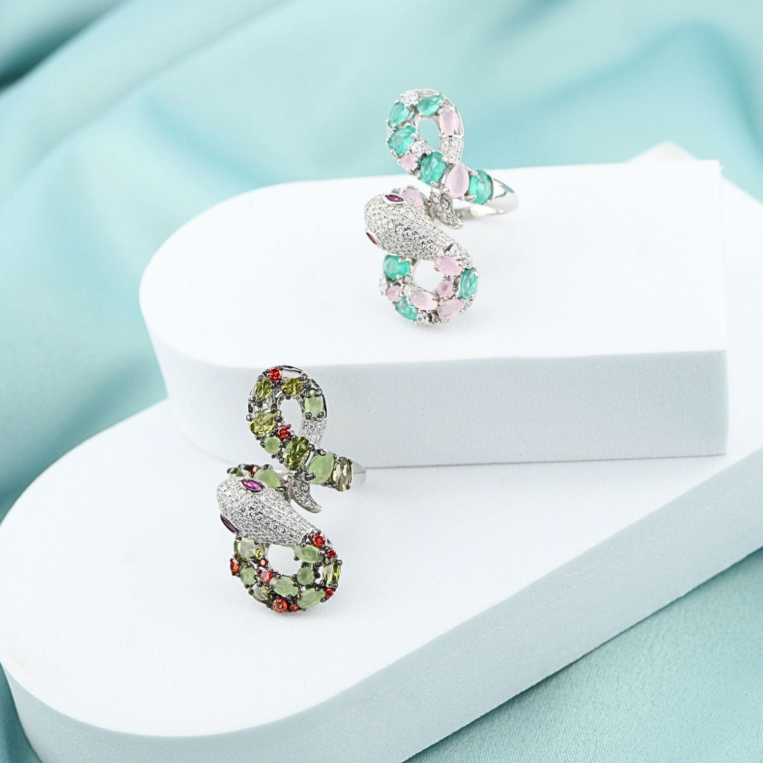 Inel Argint Sarpe cu Pietre Cuart Verzi
