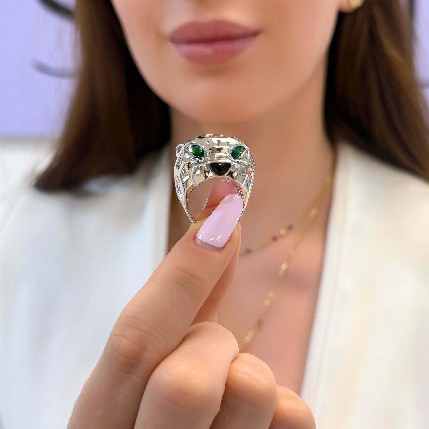 Inelul Cap de Pantera din argint 925 este o bijuterie statement, ce imbina puterea simbolica a felinei cu eleganta si rezistenta argintului. Designul detaliat reda intensitatea panterei, un simbol al curajului si al rafinamentului. O piesa moderna, indrazneata si sofisticata, perfecta pentru cei care adora bijuteriile cu personalitate.