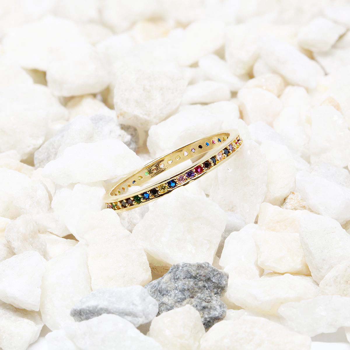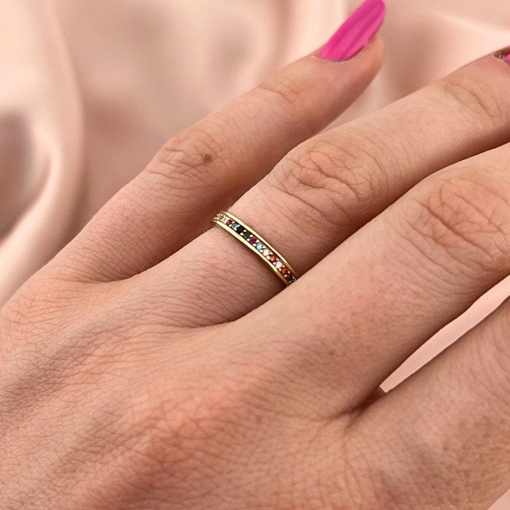 Inel Aur 14k Eternity cu Pietre Multicolore Rainbow