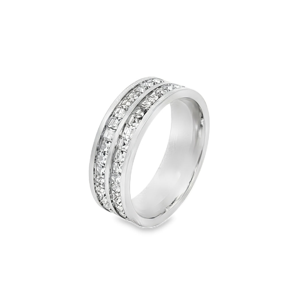 Inelul Silver Double Eternity aduce stralucire prin doua siruri de pietre, oferind un design elegant si modern pentru orice tinuta.