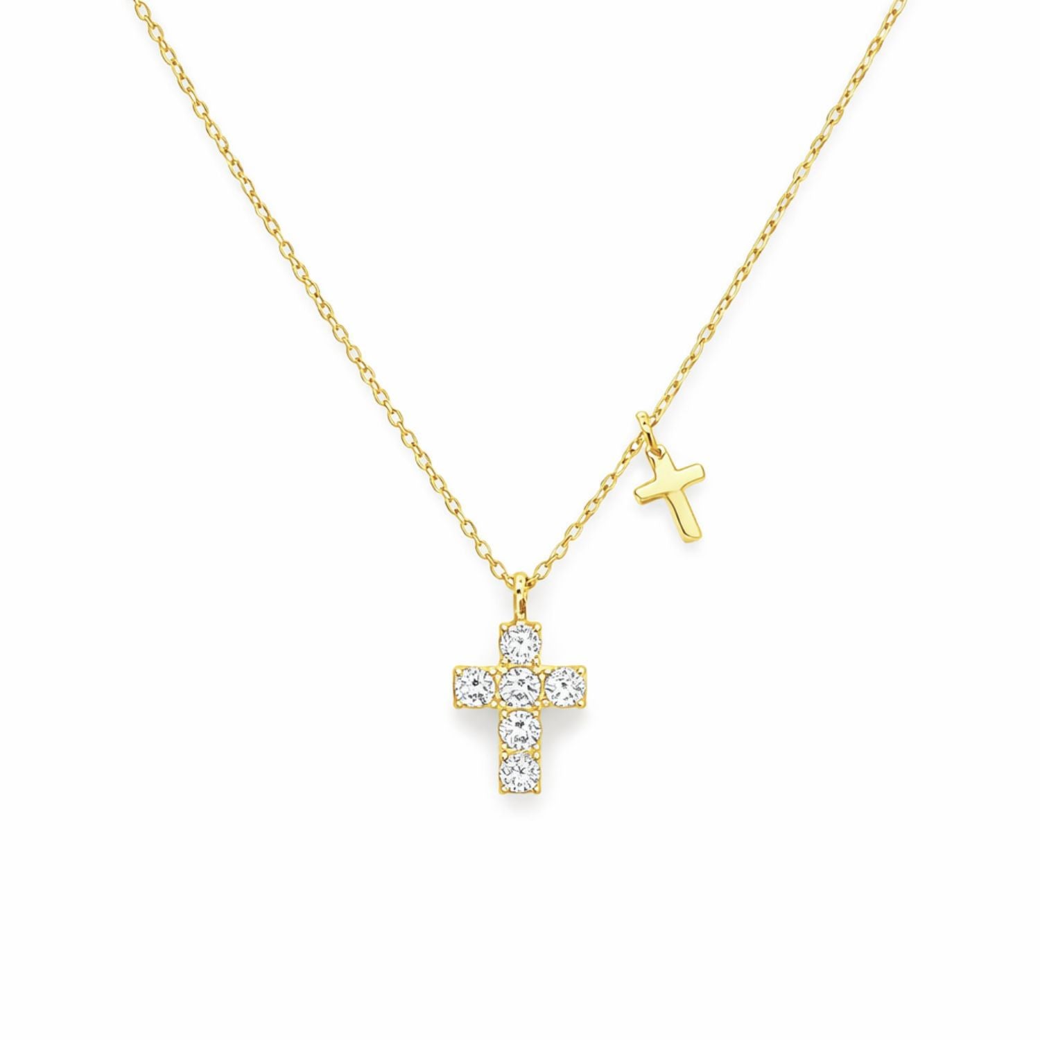 Lant din argint placat cu aur cu pandantiv cruce, un accesoriu elegant cu semnificatie spirituala. Ideal pentru purtare zilnica sau ocazii speciale.