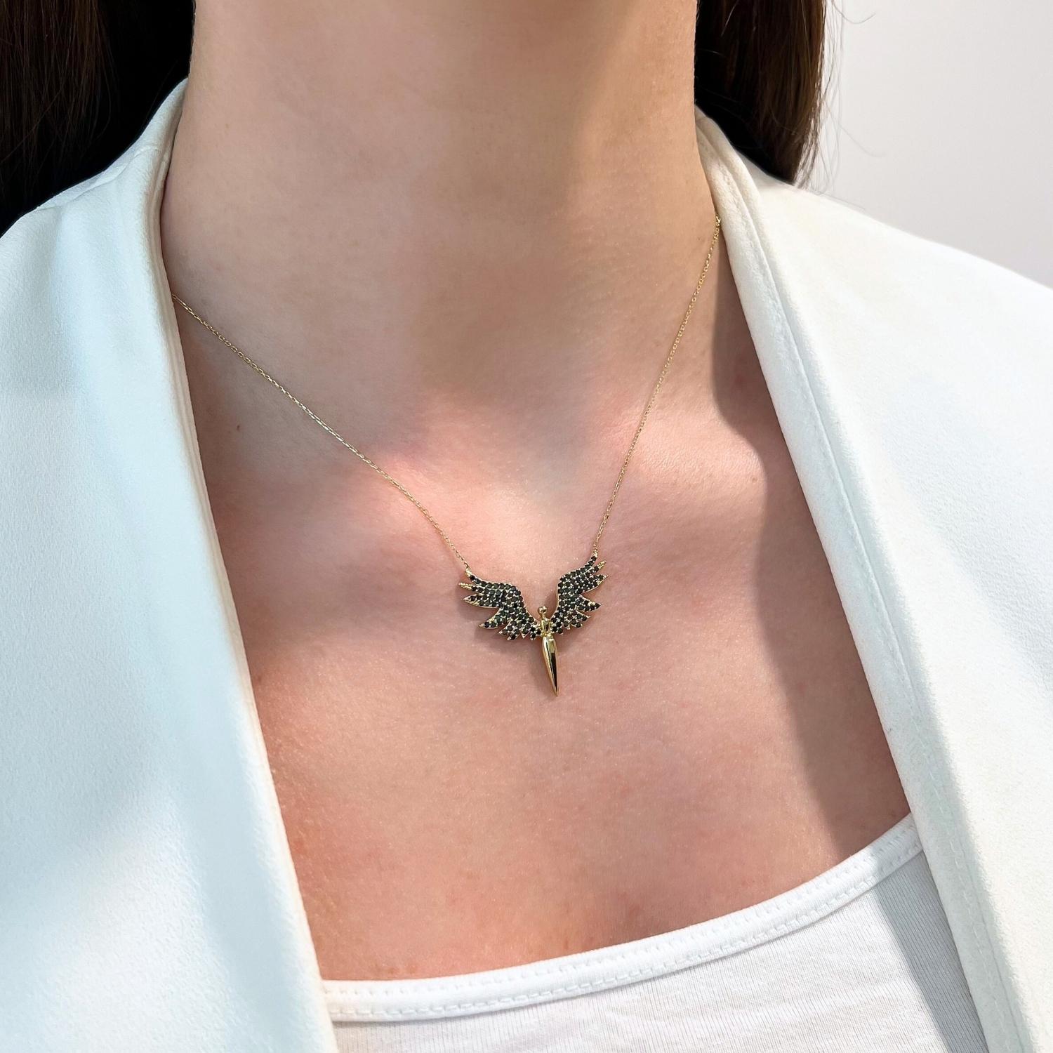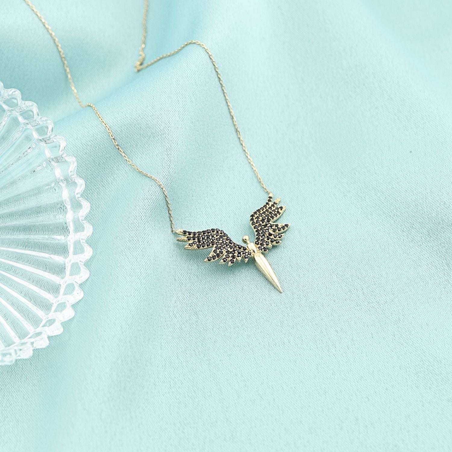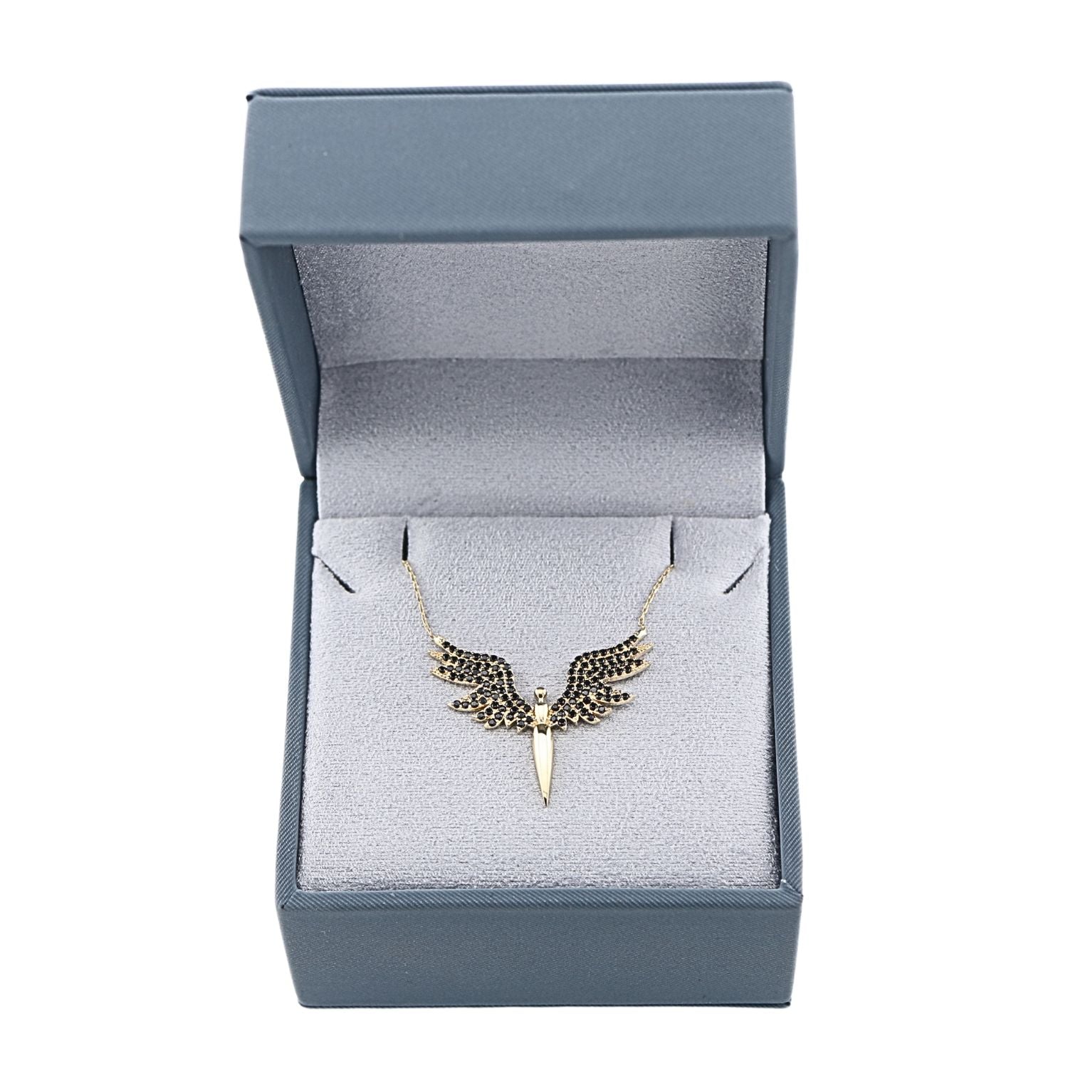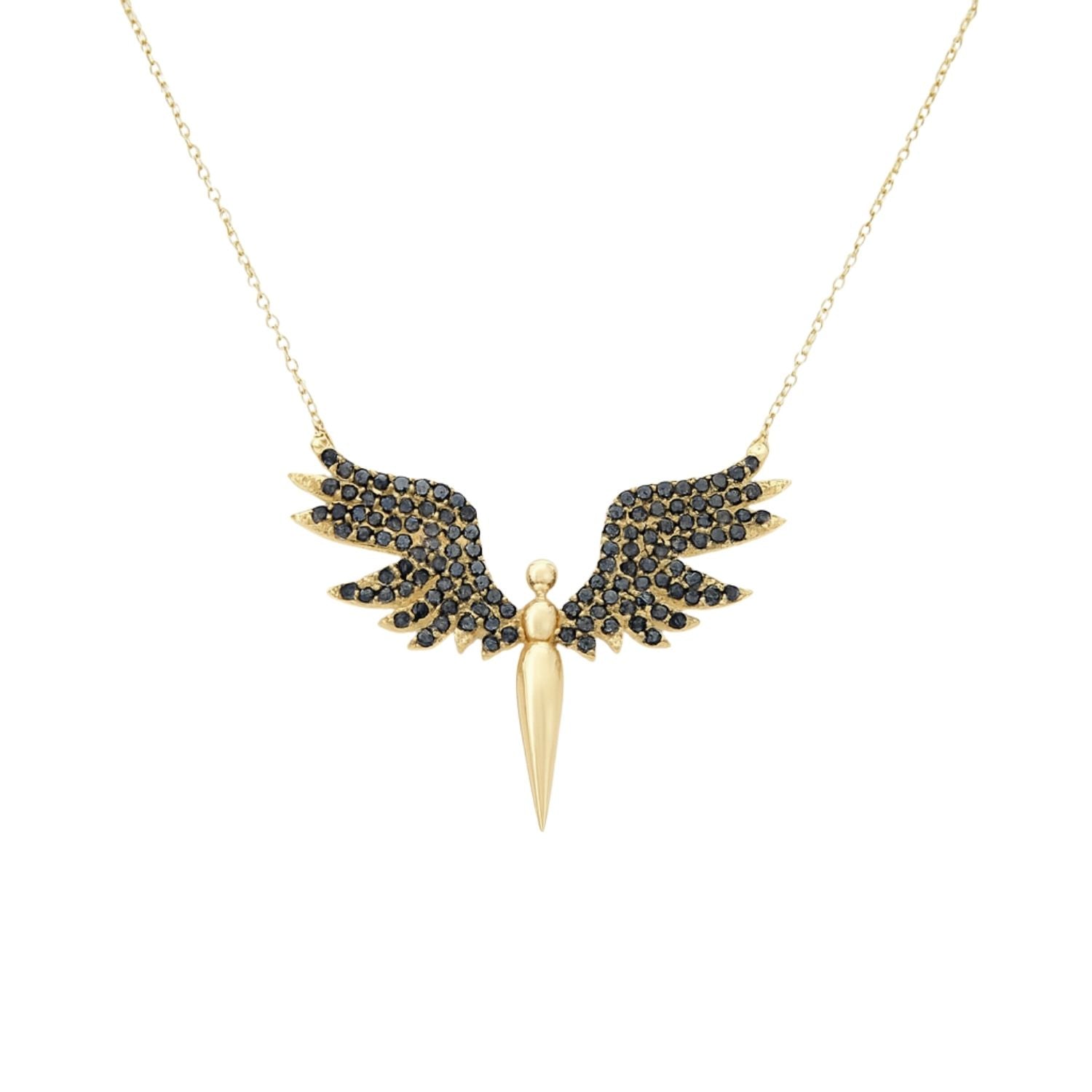 Lant din aur 14k cu pandantiv Arhanghelul Mihail decorat cu pietre negre, simbol al protectiei divine si al stilului impunator. Ideal pentru un look distinct.