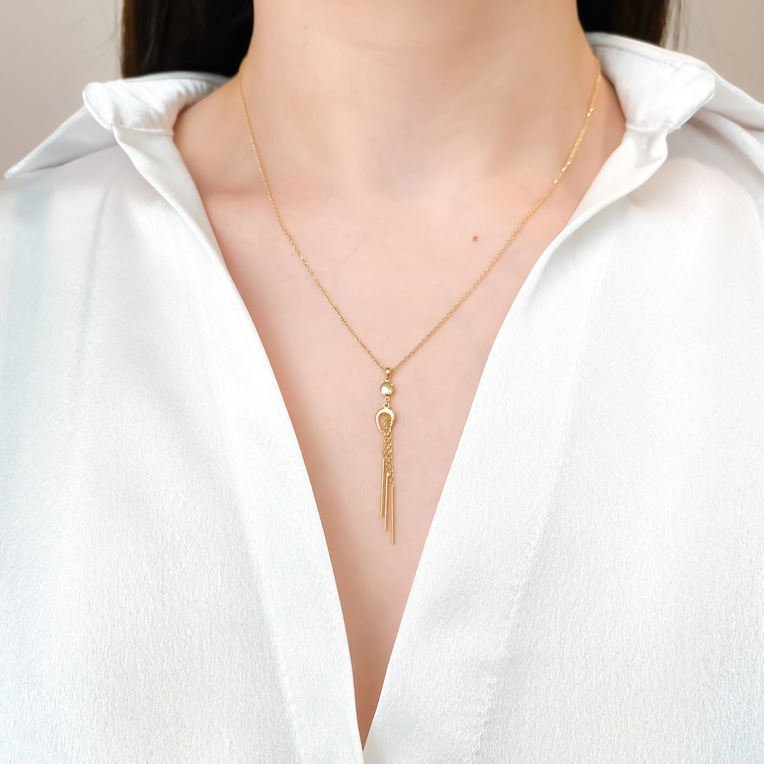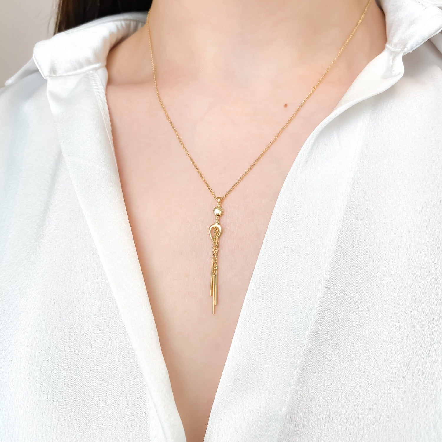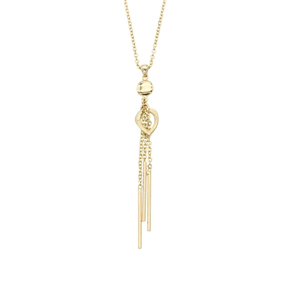 Adaugă o notă de feminitate și dinamism ținutelor tale cu acest lanț modern din aur de 14K, decorat cu franjuri elegante. Designul fluid și jucăuș transformă această bijuterie într-o piesă statement, ideală pentru a completa atât outfiturile de zi, cât și cele de seară. Franjurii delicat articulați oferă mișcare și strălucire subtilă, evidențiind linia gâtului într-un mod sofisticat. Realizat din aur galben de 14 karate, acest lanț este alegerea perfectă pentru femeia care își dorește o bijuterie contemporană, cu personalitate și stil.
