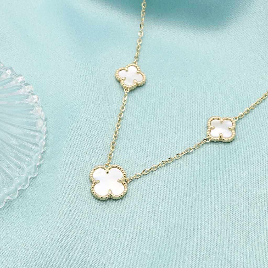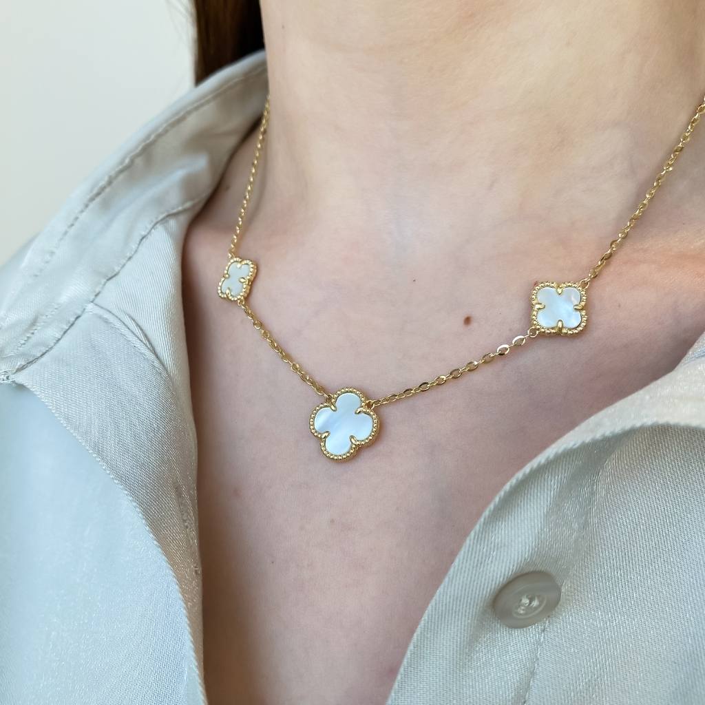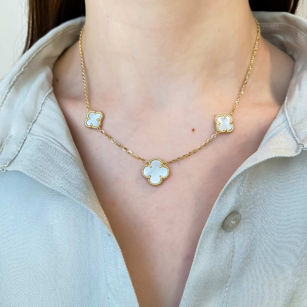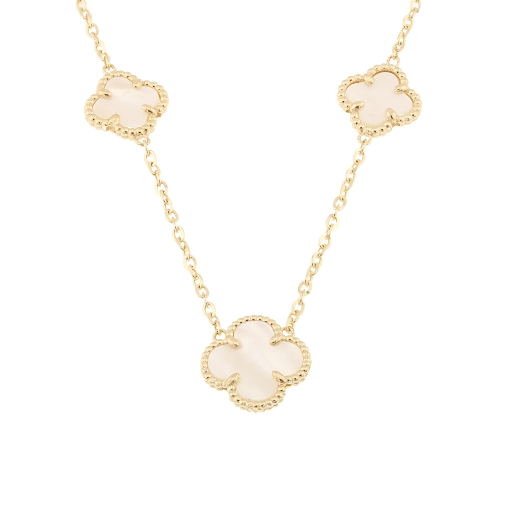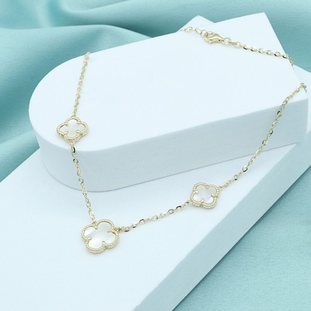 Lant Aur 14k Trei Flori Albe Sidef Natural