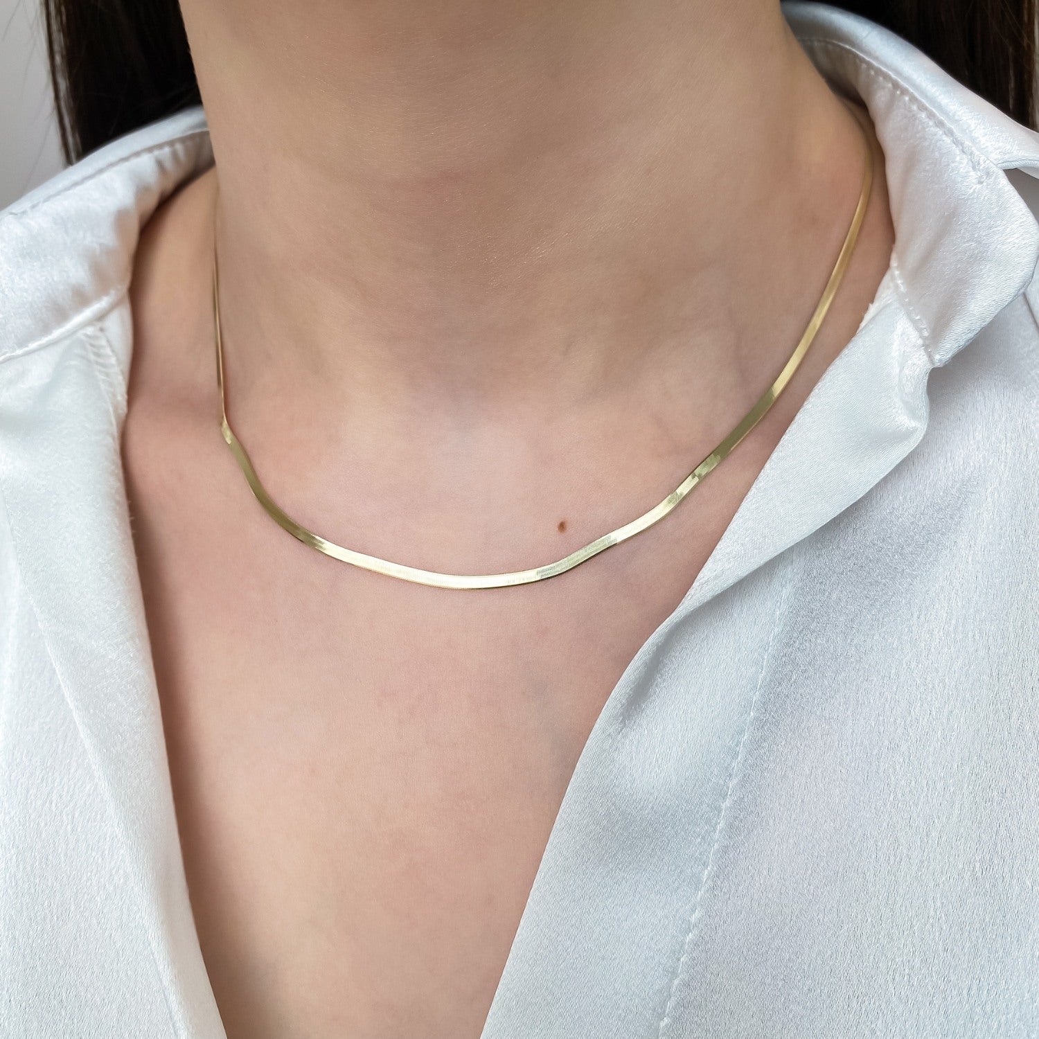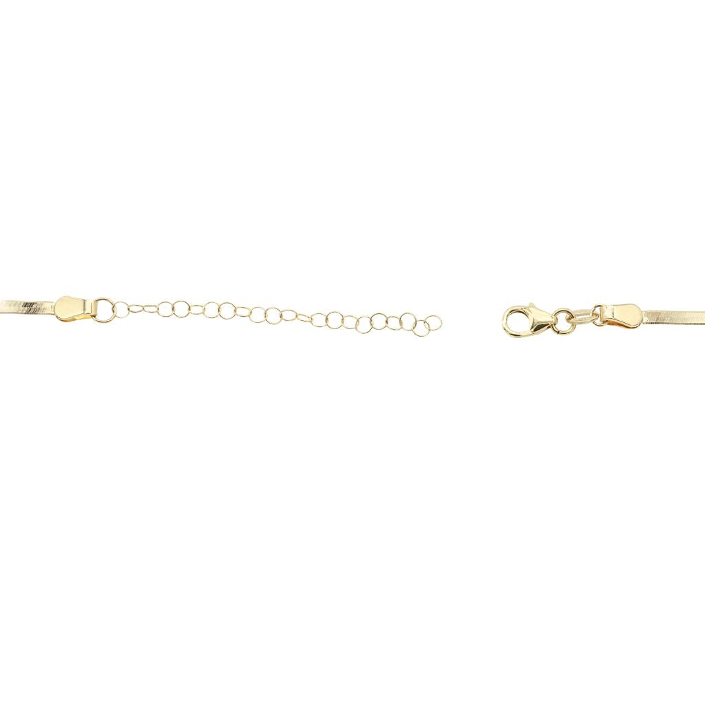 Elegant și sofisticat, lanțul din aur de 14K cu model herringbone este alegerea ideală pentru un look modern și rafinat. Designul plat, cu textură fină, reflectă lumina într-un mod subtil, oferind un efect fluid și luxos. Realizat din aur galben de 14 karate, acest lanț este perfect de purtat singur ca piesă statement sau în layering cu alte coliere fine. O bijuterie atemporală, potrivită pentru orice ocazie – de la outfituri de zi până la apariții elegante de seară.