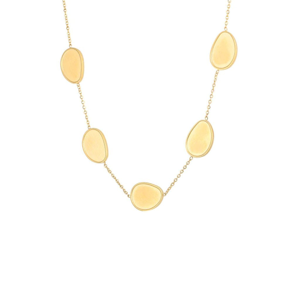 Lantul Golden Elipse placat cu aur 14k este o bijuterie moderna si rafinata, cu un design fluid si elegant. Elementele ovale sidefate creeaza un efect vizual sofisticat, inspirat de formele organice si echilibrul natural. Placajul cu aur 14k intr-un strat gros adauga o stralucire calda si luxoasa, facand lantul usor de purtat atat zi de zi, cat si la ocazii speciale. O piesa versatila si atemporala, perfecta pentru un look feminin si contemporan.