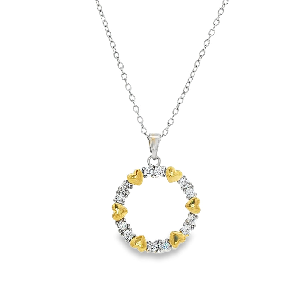 Lant placat cu aur cu pandantiv coronita si inimioare – un accesoriu delicat si romantic, perfect pentru tinute elegante sau cadouri speciale.