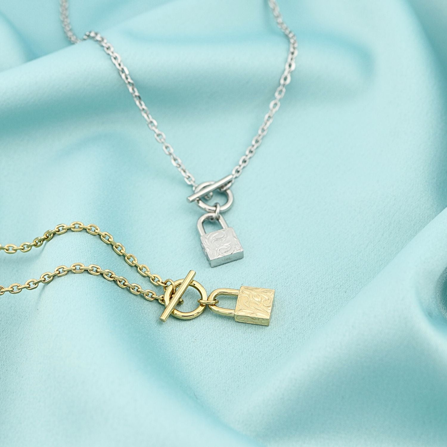 Lantul Locked cu lacat si inchidere T-Bar este o bijuterie statement cu vibe urban si contemporan. Realizat din otel chirugical 316L, rezistent si hipoalergenic, imbina perfect designul industrial cu eleganta minimalista. Detaliul T-Bar ofera un efect modern si practic, in timp ce lacatul simbolizeaza forta si conexiunea. Poate fi purtat atat solo, cat si in layering, fiind un accesoriu unisex, cool si versatil. Perfect pentru un look modern si sigur pe sine.
