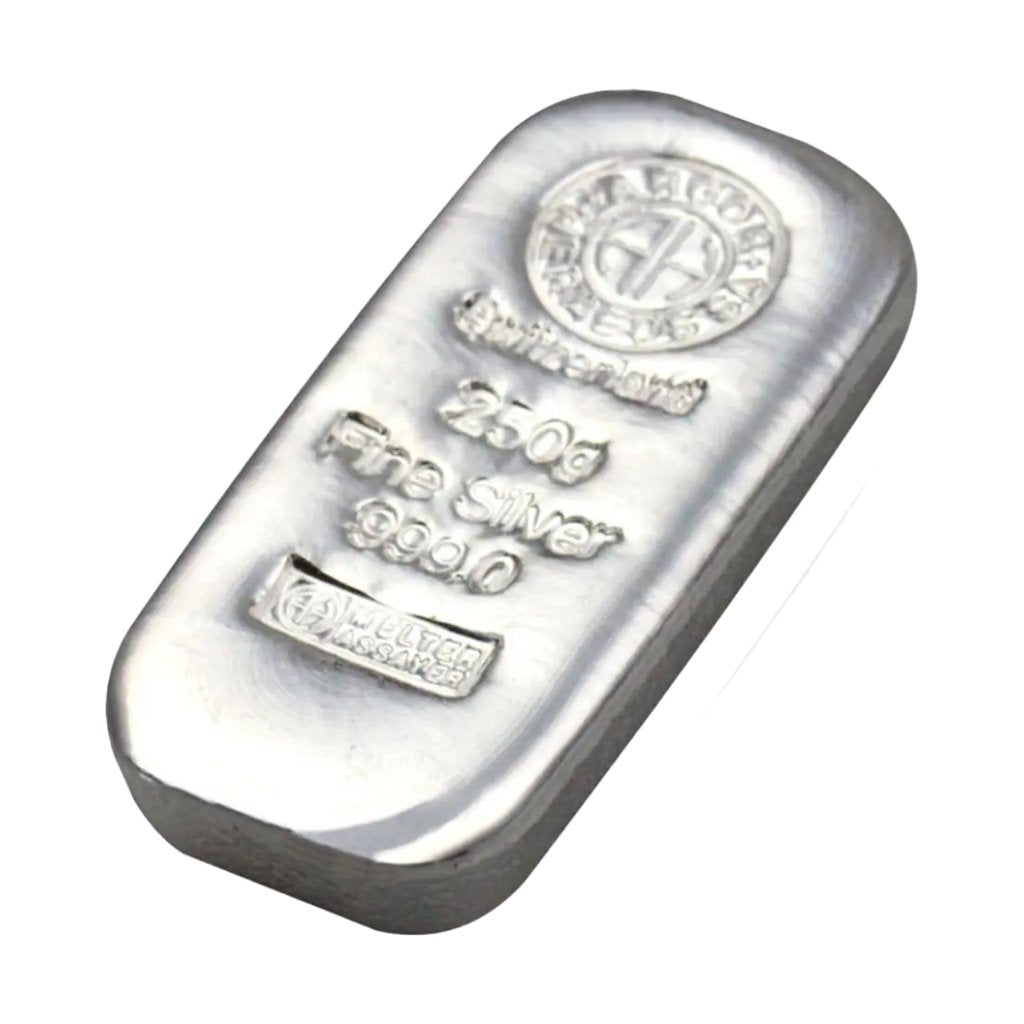 Descoperiți valoarea atemporală a argintului cu lingoul de argint de 250 g | Argor-Heraeus. Aceste lingouri lucrate cu meticulozitate, realizate din argint fin 999/1000, reprezinta eleganta si siguranta. Produse de una dintre cele mai de încredere rafinării, Argor Heraeus, aceste lingouri de argint de 250,00 g sunt ideale pentru investitorii care doresc să-și diversifice sau să-și dezvolte portofoliul de metale prețioase.