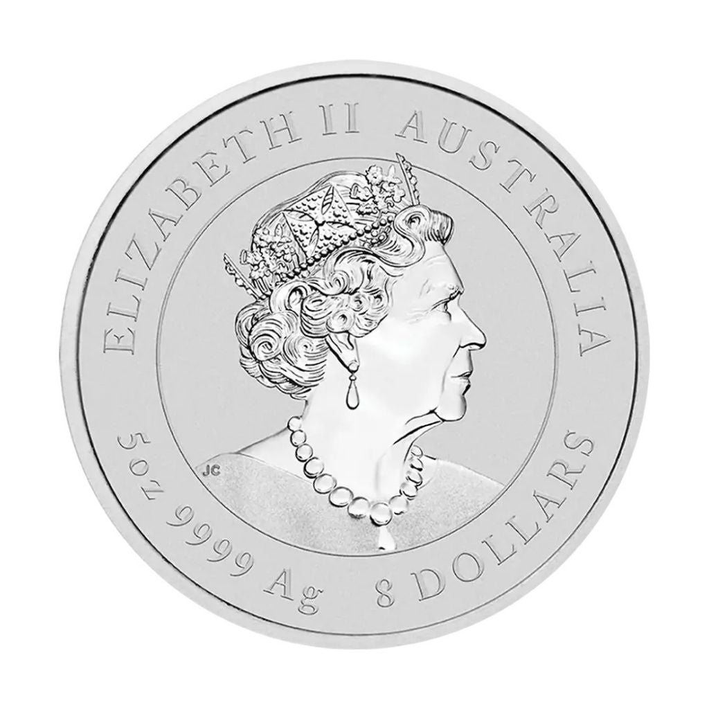 Investește în moneda de argint Iepure lunar III de 5 uncii. Această monedă cântărește 155.51 g și este perfectă pentru oricine dorește să își diversifice portofoliul sau să adauge la colecția de metale prețioase o monedă specială.