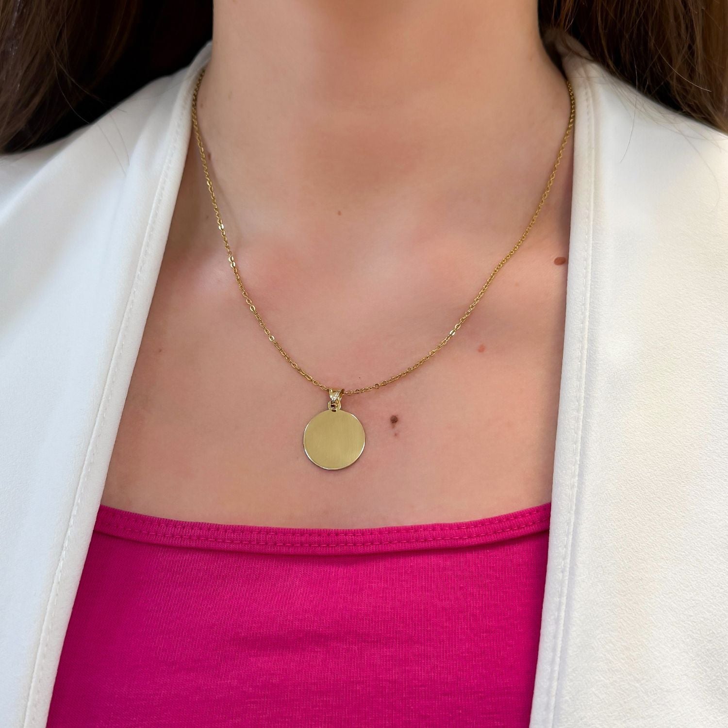 Pandantiv banut din aur 14k, gravabil, perfect pentru un cadou personalizat cu stil si eleganta durabila.