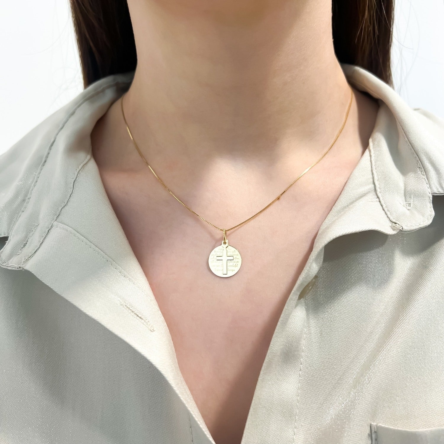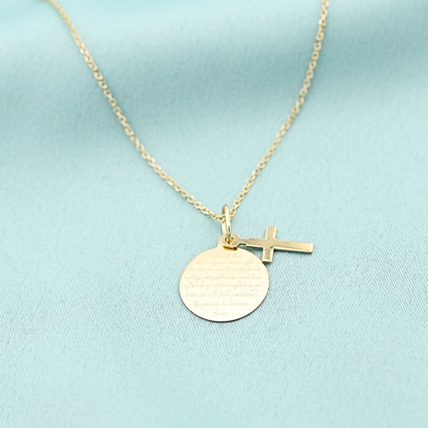 Pandantiv Aur 14k Banut si Cruce cu Rugaciune pentru Protectie