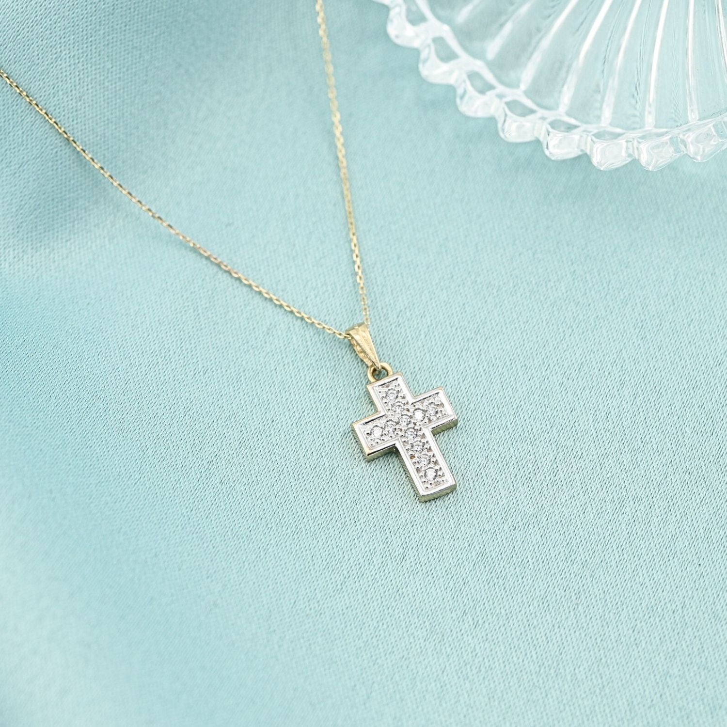 Pandantiv Aur 14k Cruce cu Pietre Zirconia