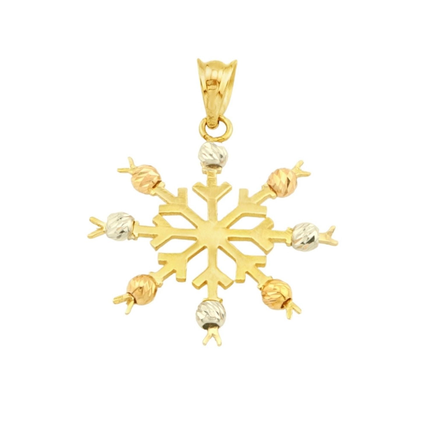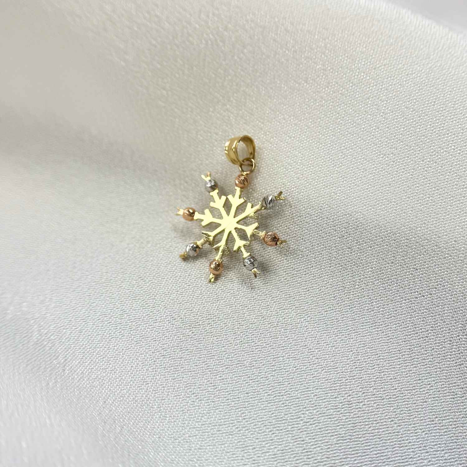 Pandantivul Fulg cu Bile din aur 14k este o bijuterie delicata si rafinata, inspirata de frumusetea fulgilor de zapada. Detaliile aurii si bilele decorative adauga un plus de stralucire si unicitate, transformandu-l intr-un accesoriu elegant si modern. Perfect pentru a fi purtat pe un lant fin sau ca parte dintr-un layering sofisticat, acest pandantiv este alegerea ideala pentru a adauga un strop de magie tinutelor tale. Un cadou special, plin de simbolism si feminitate.