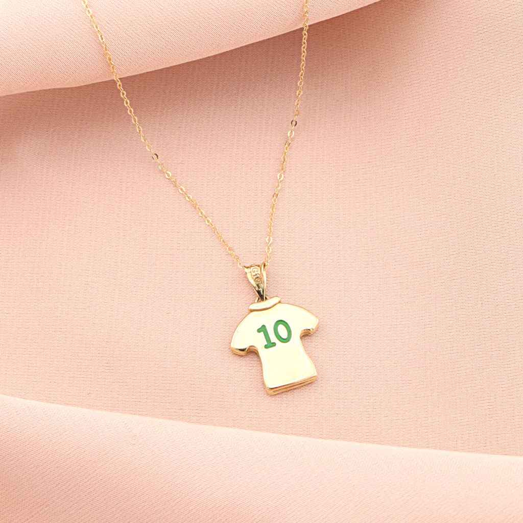 Pandantiv Reversibil Aur 14k Tricou cu Numarul 10, perfect pentru cei pasionati de fotbal.