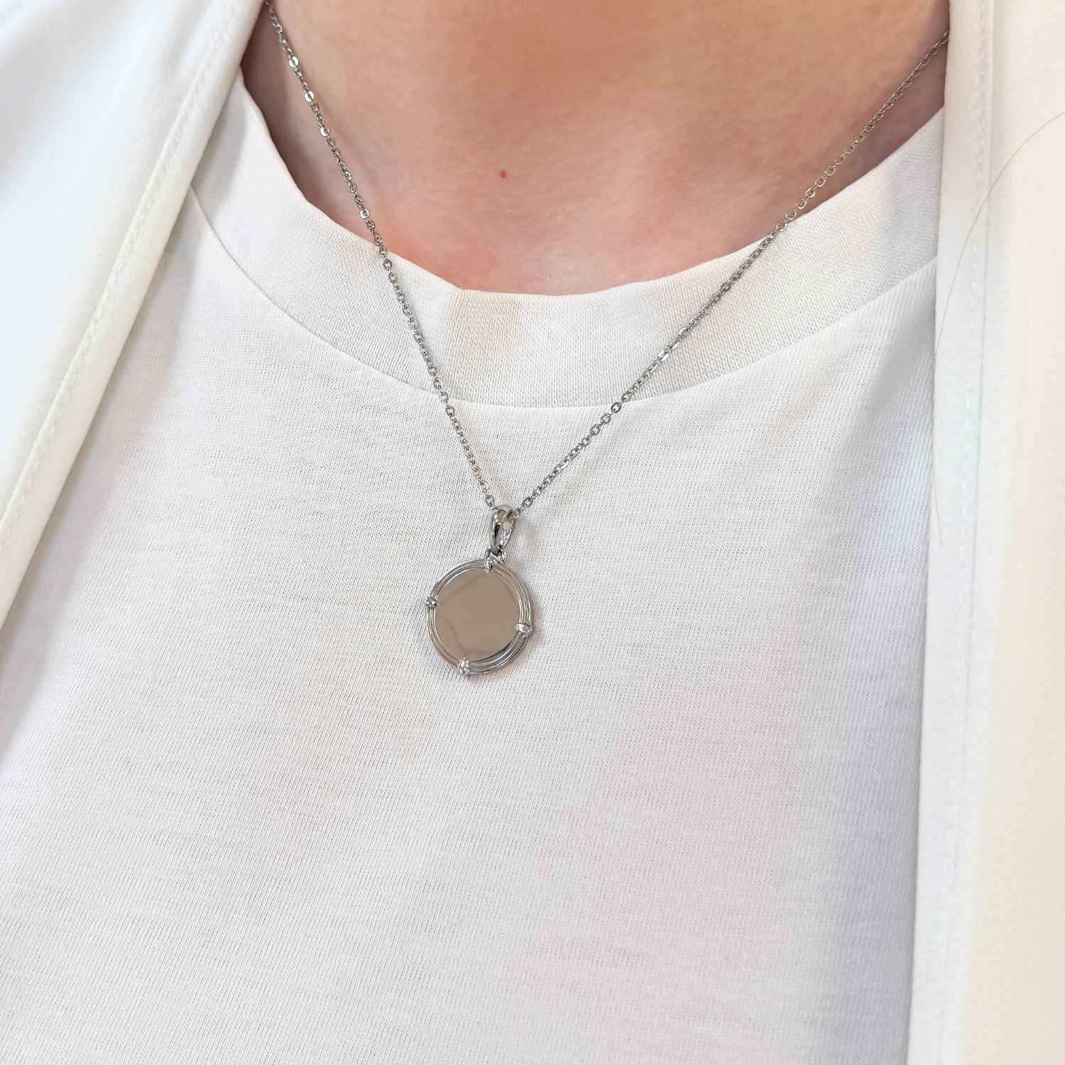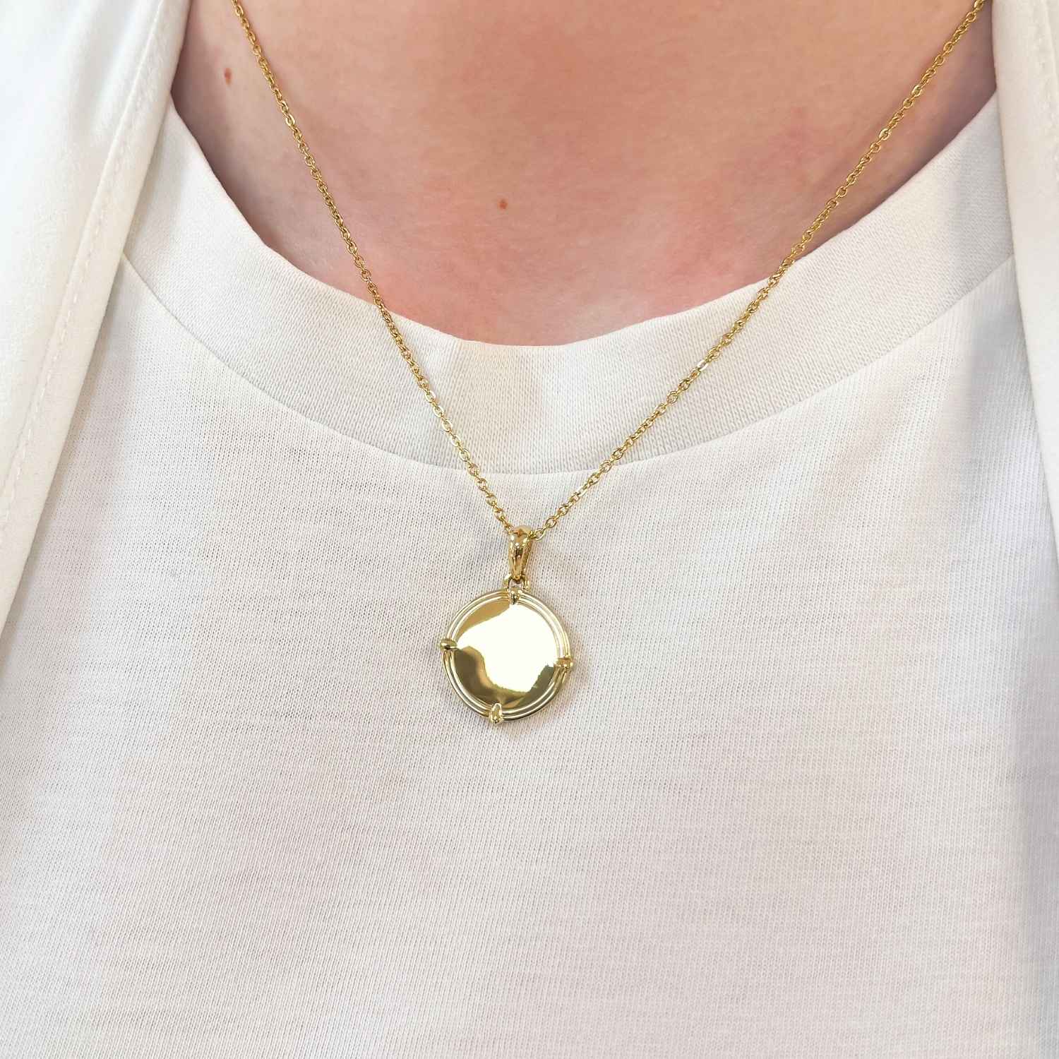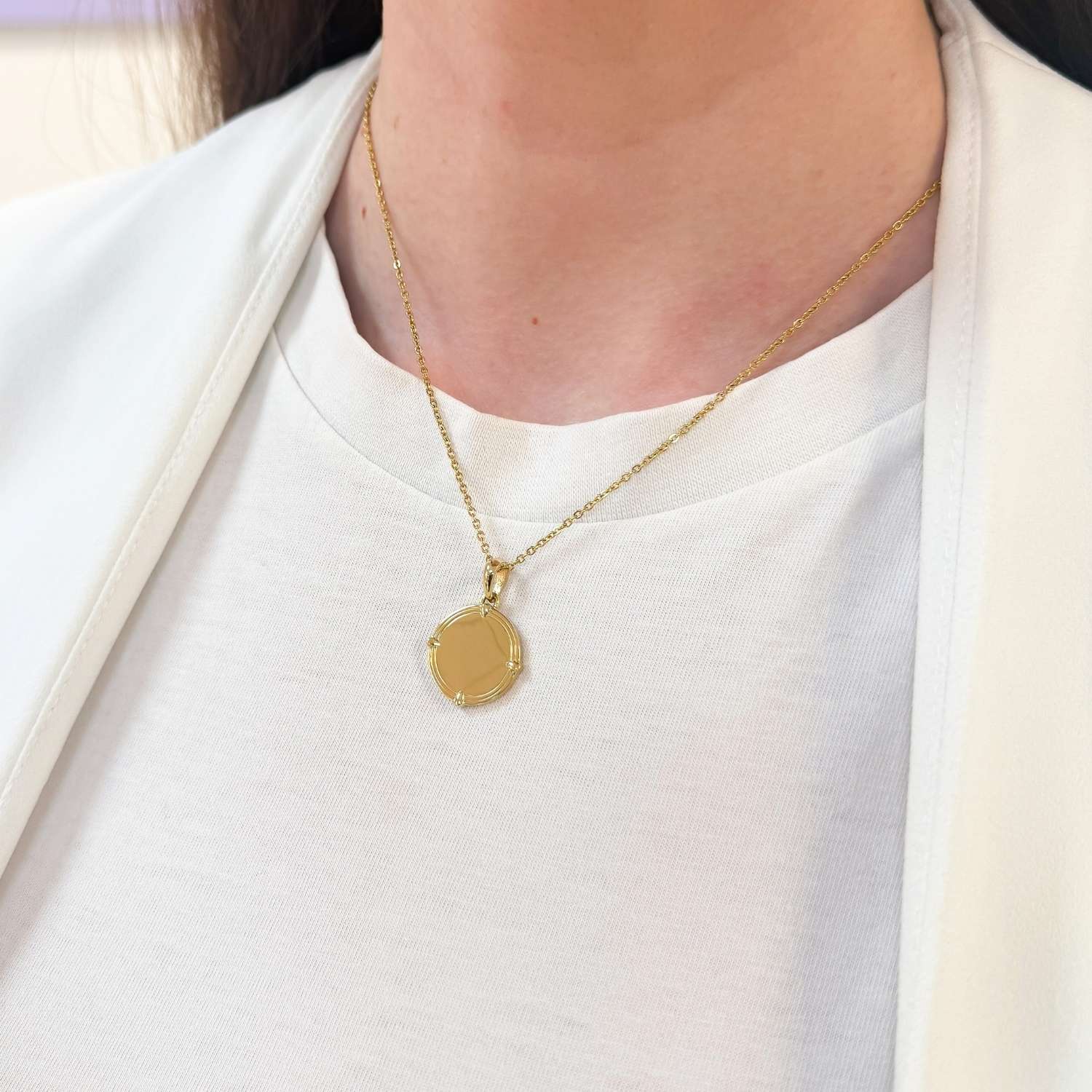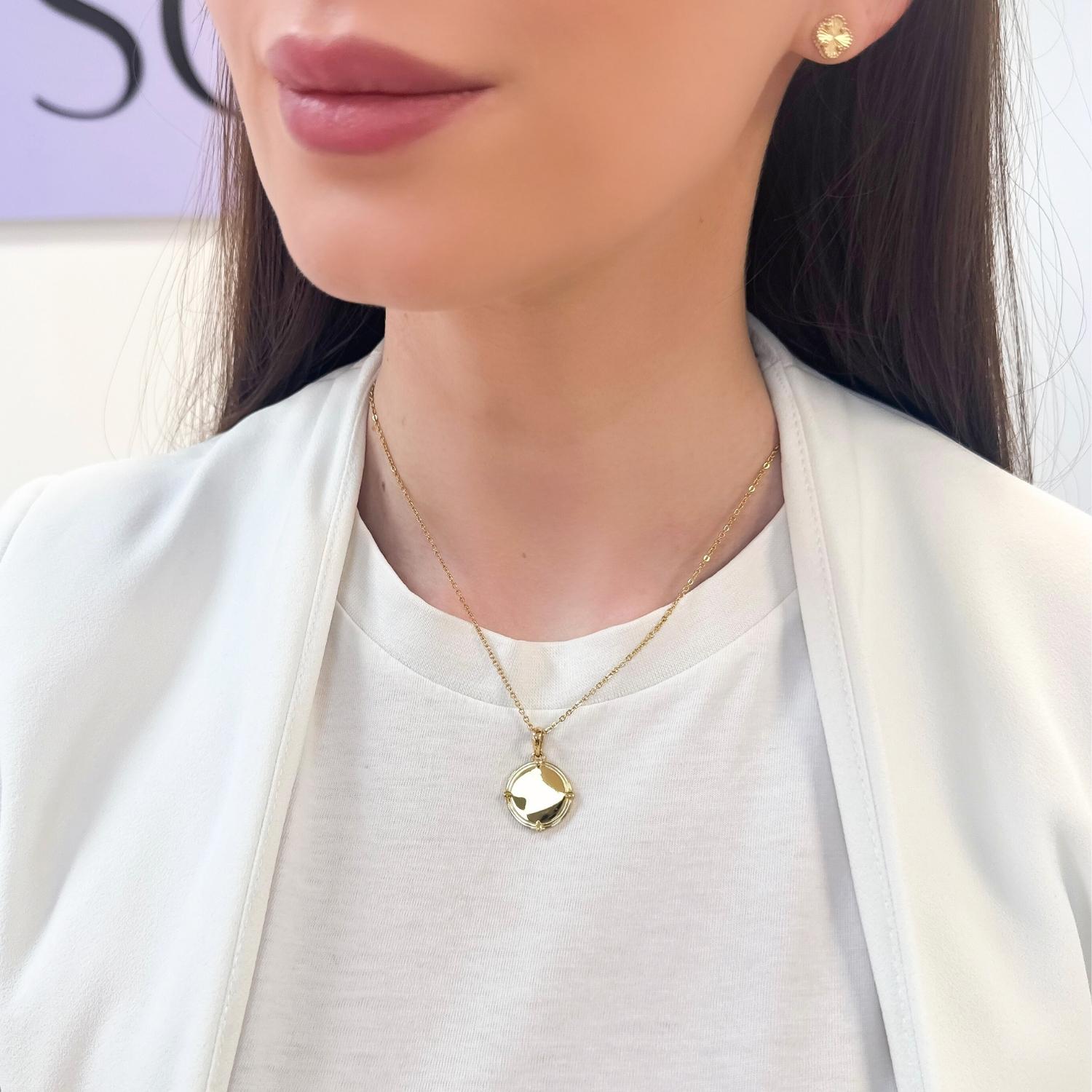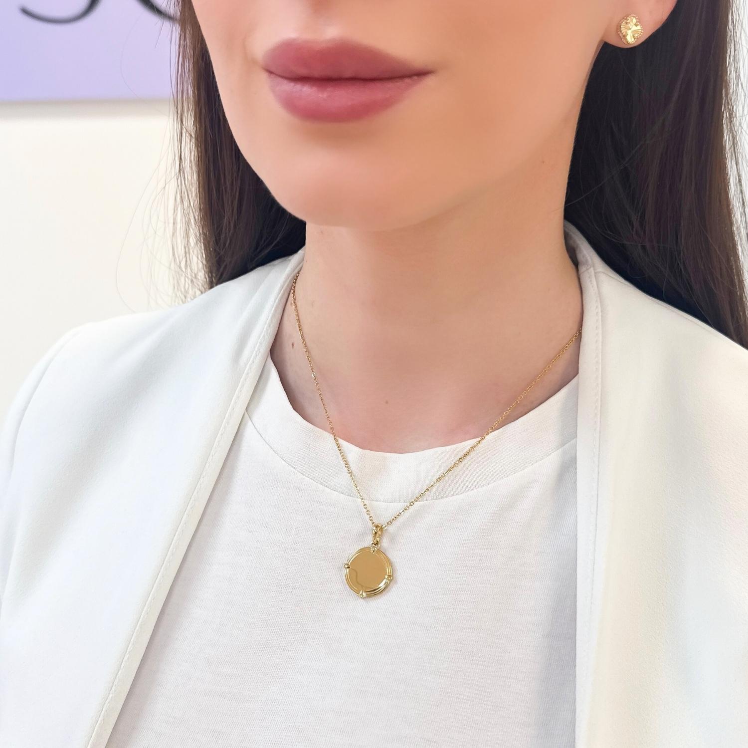 Lant cu pandantiv banut gravabil, elegant si personalizabil – perfect pentru a pastra amintiri speciale sau mesaje unice aproape de inima. Varianta aurie a lantului este placata cu aur de 14k intr-un strat gros de cel putin 2 microni, fapt ce ii confera o rezistenta indelungata.